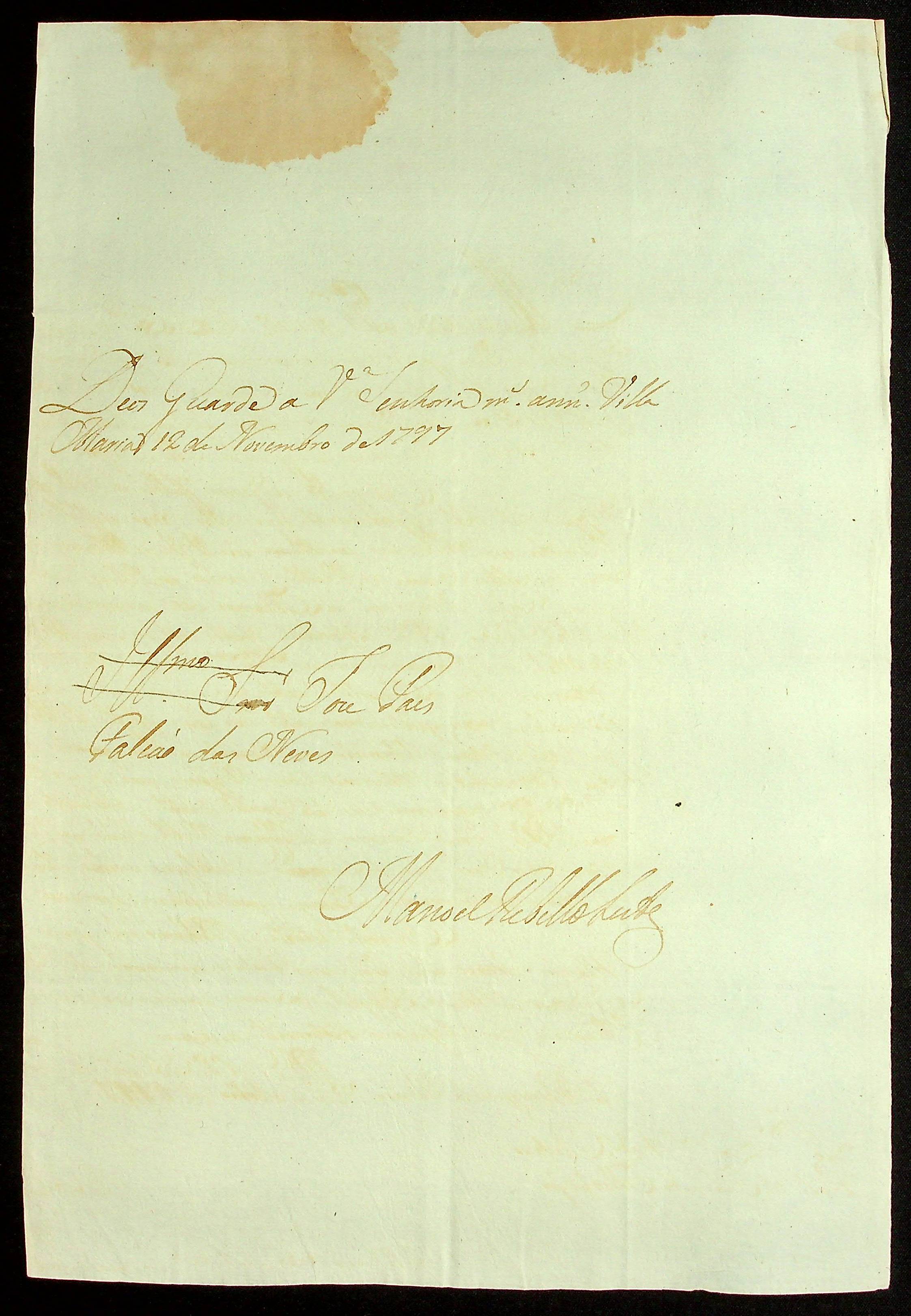 CARTA de Manoel Rabelo Leite ao Mestre de Campo José Paes Falcão das Neves.
