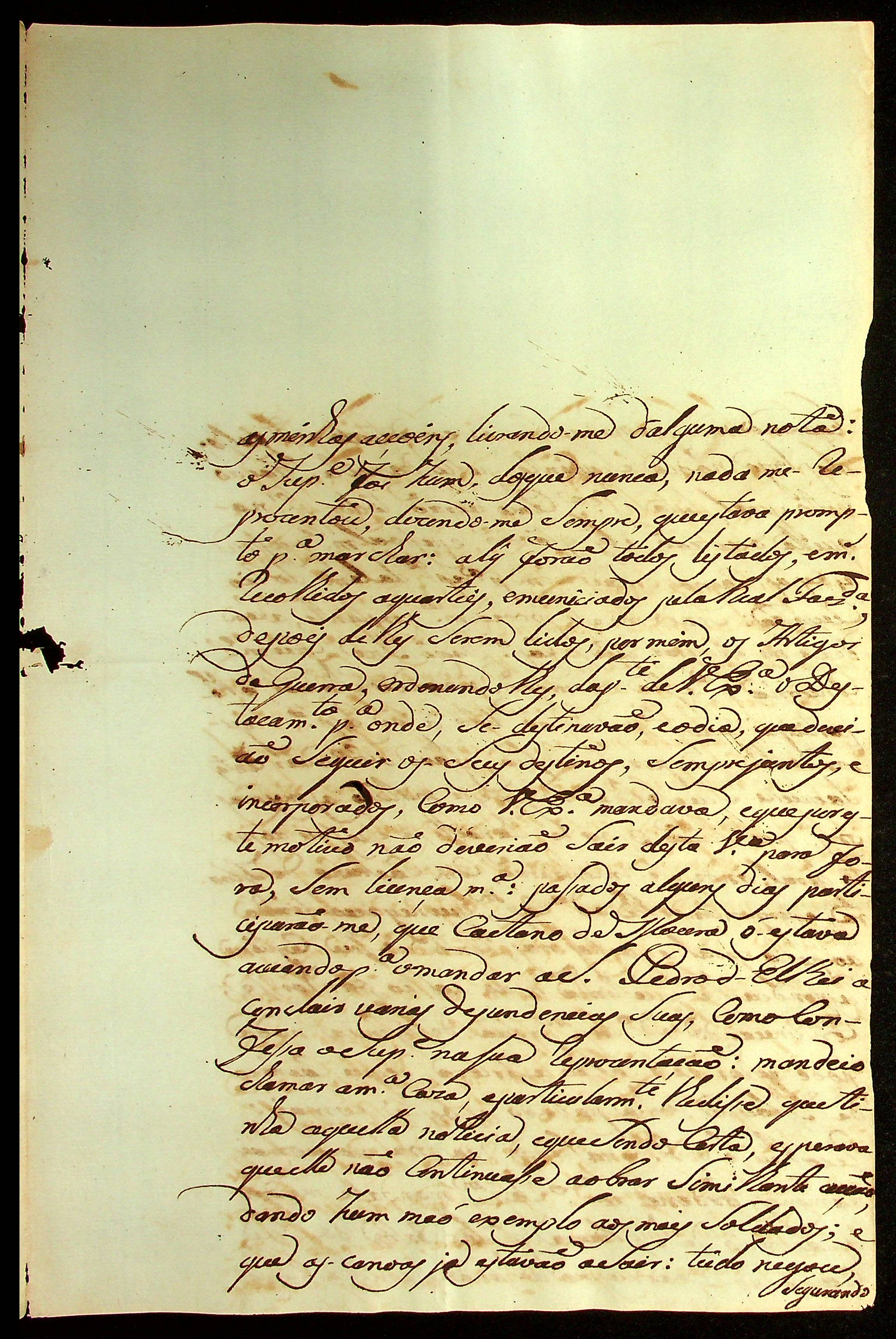 CARTA do Mestre de Campo José Paes Falcão das Neves ao [Governador e Capitão-General da Capitania de Mato Grosso Caetano Pinto de Miranda e Montenegro].