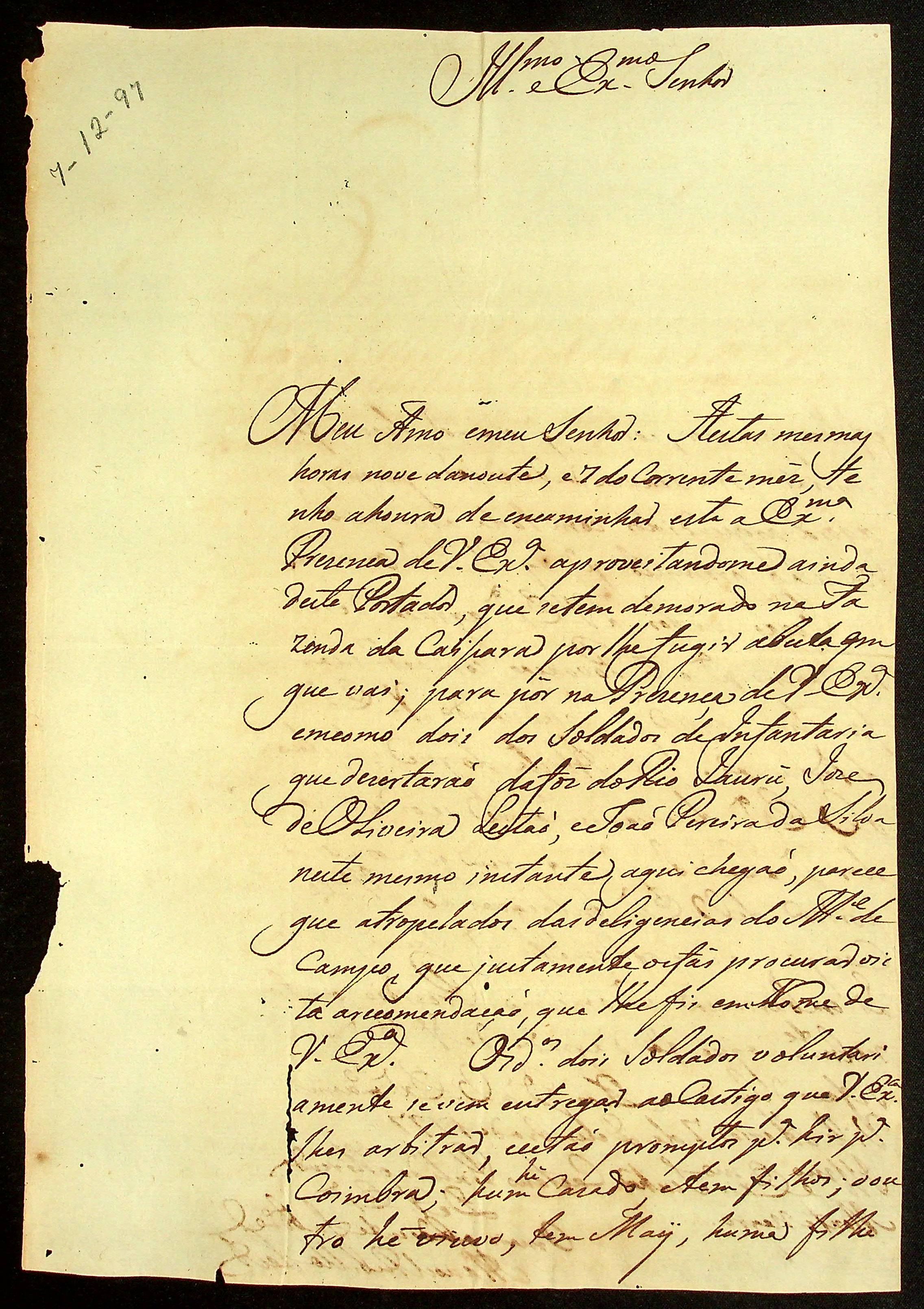 CARTA de Manoel Rabelo Leite ao [Governador e Capitão-General da Capitania de Mato Grosso] Caetano Pinto de Miranda e Montenegro.