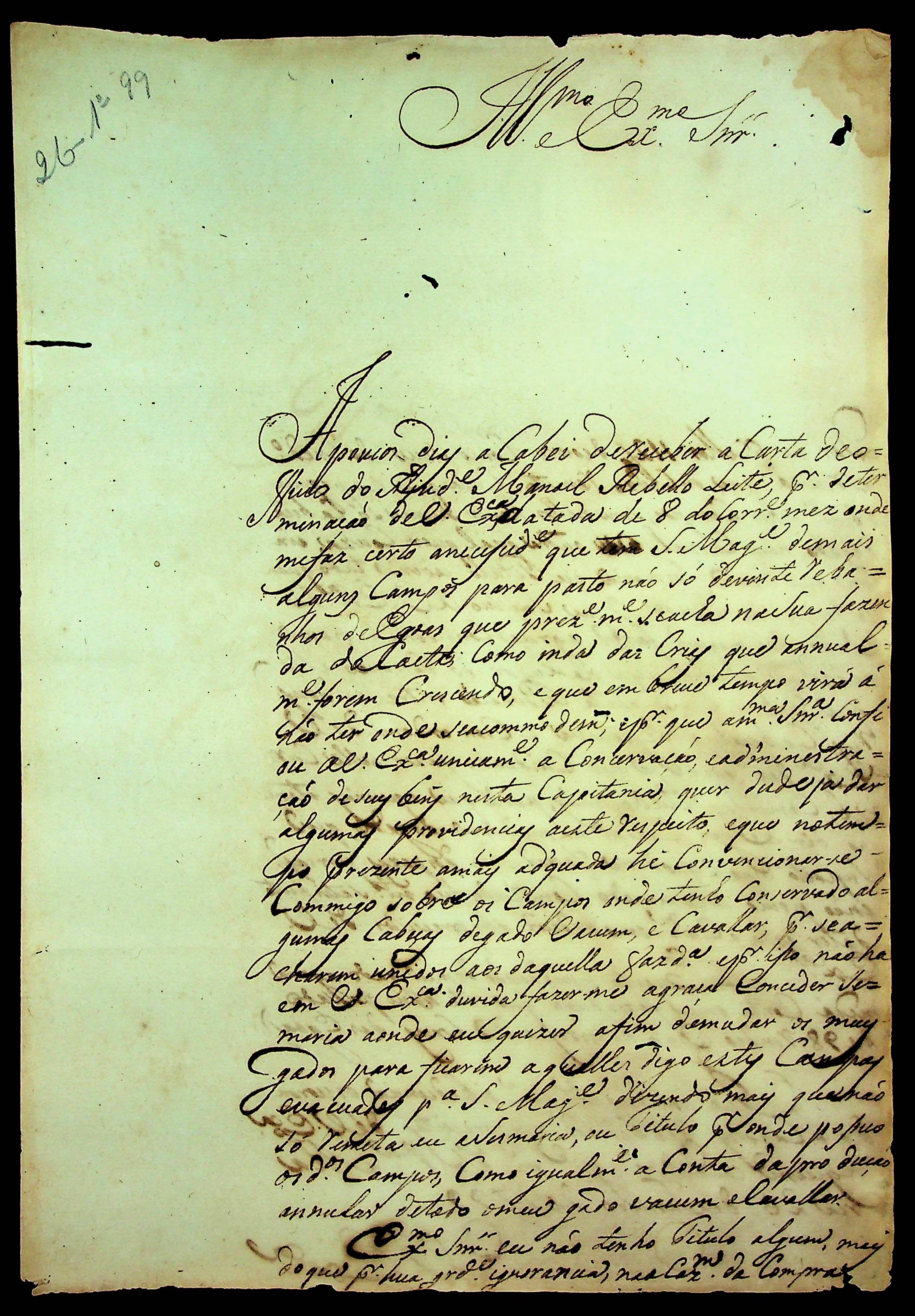 CARTA de Manoel Gonçalves Neves ao Governador e [Capitão-General da Capitania de Mato Grosso] Caetano Pinto de Miranda e Montenegro.