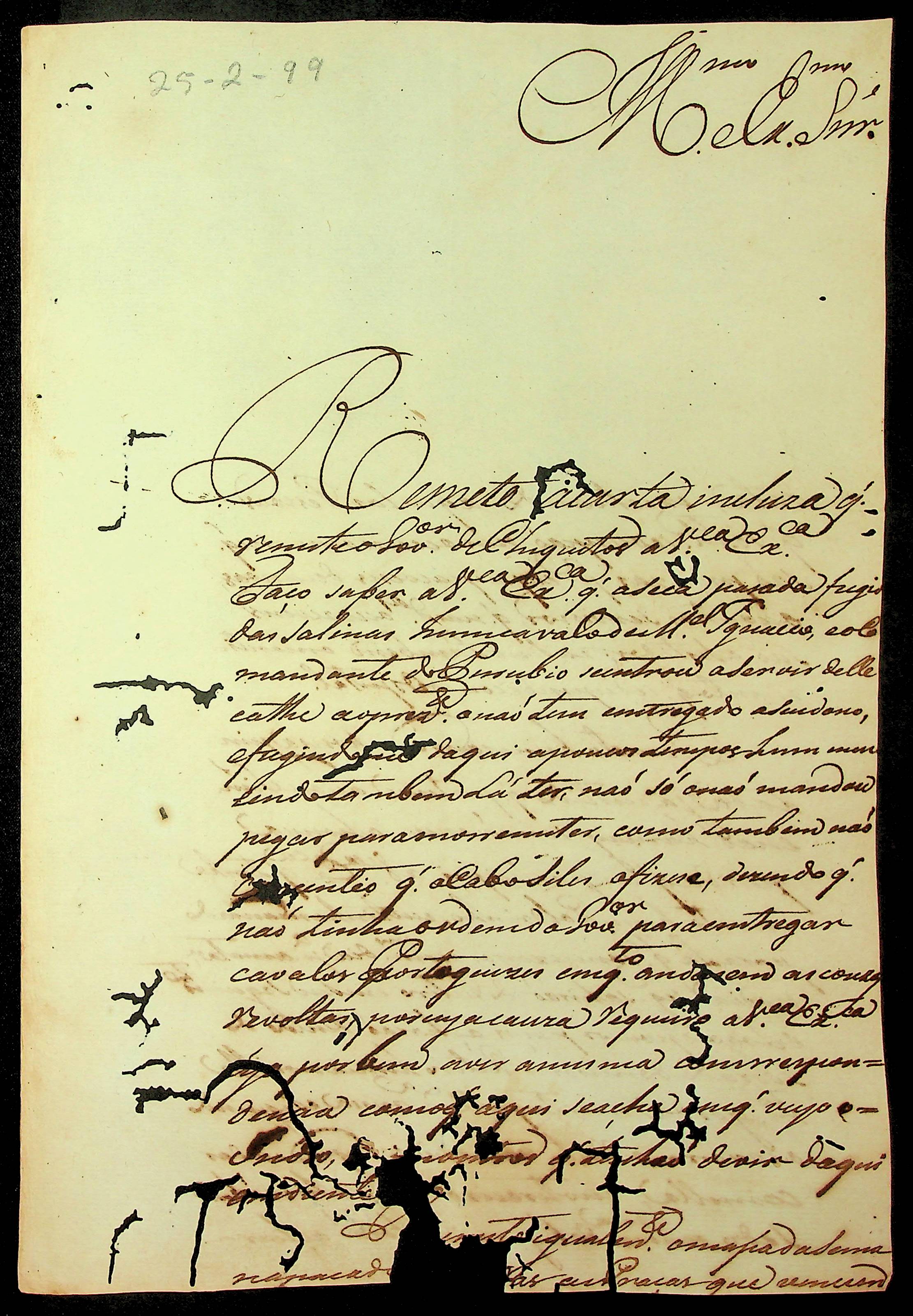 CARTA do [Comandante] Francisco Pedro de Melo ao [Governador e Capitão-General da Capitania de Mato Grosso] Caetano Pinto de Miranda e Montenegro.