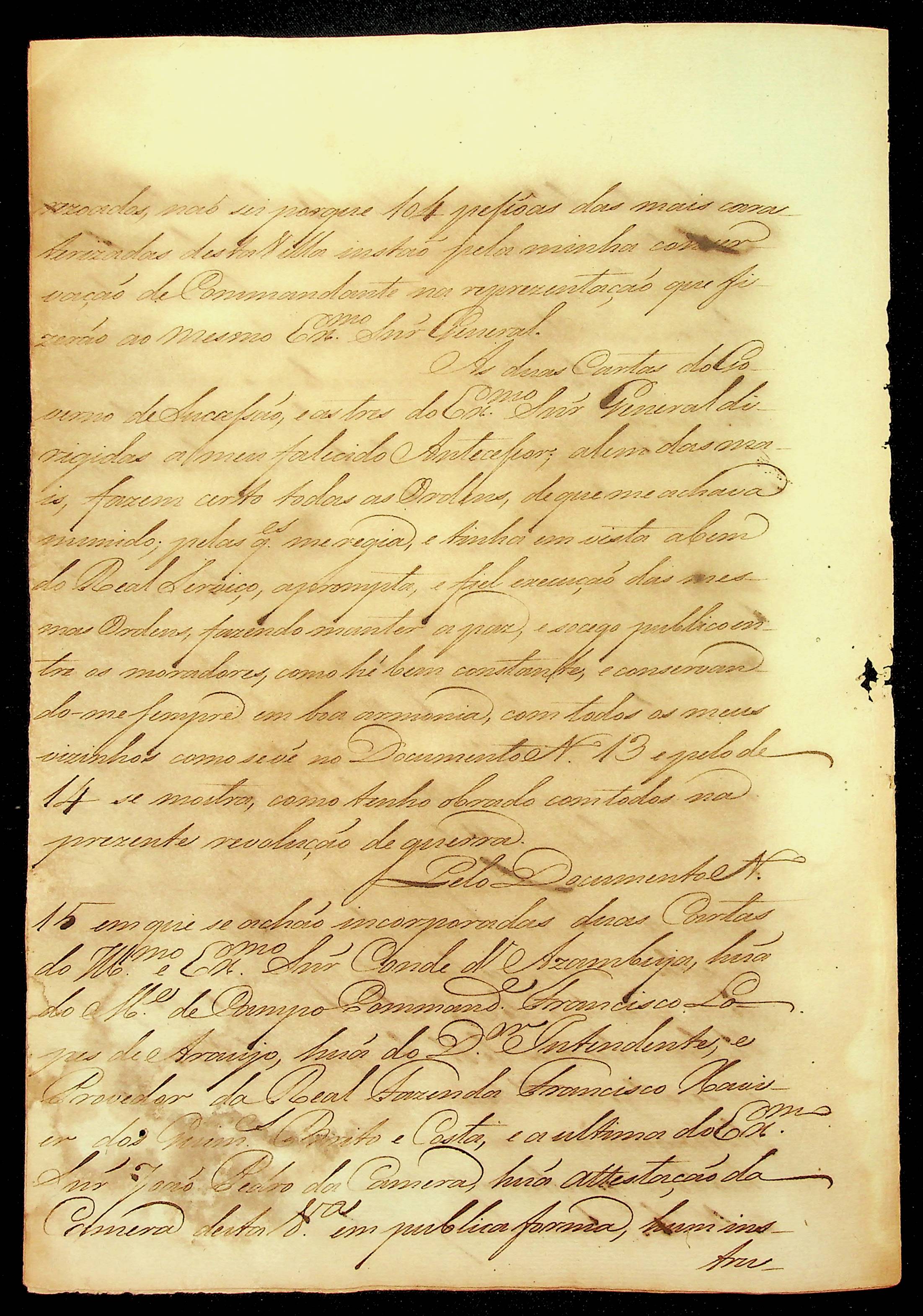 CARTA (cópia) do Mestre de Campo da Vila do Cuiabá José Paes Falcão das Neves ao Ouvidor Geral e Corregedor da Comarca Francisco Lopes de Souza Ribeiro de Farias Lemos.