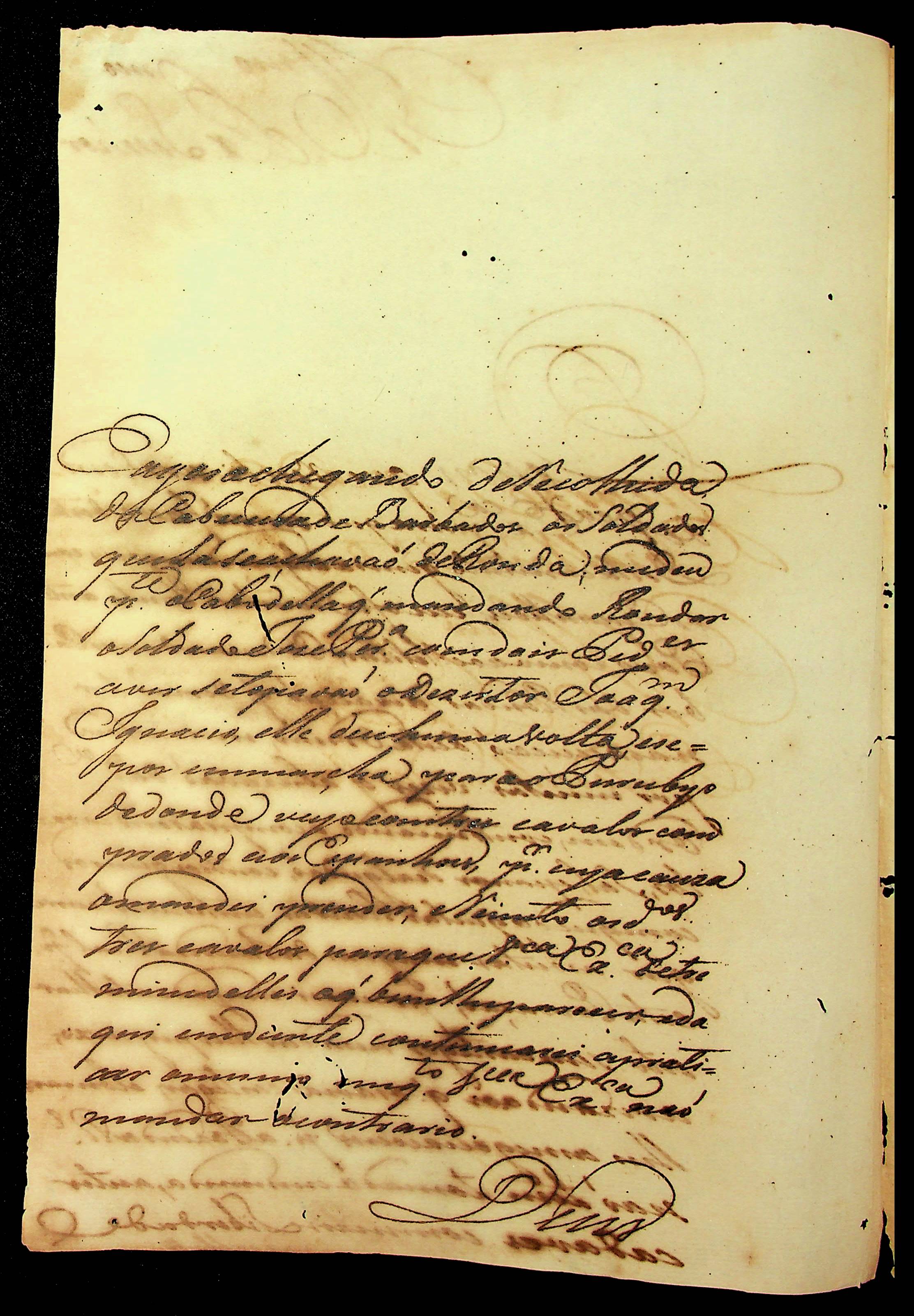 CARTA do [Comandante] Francisco Pedro de Melo ao [Governador e Capitão-General da Capitania de Mato Grosso] Caetano Pinto de Miranda e Montenegro.