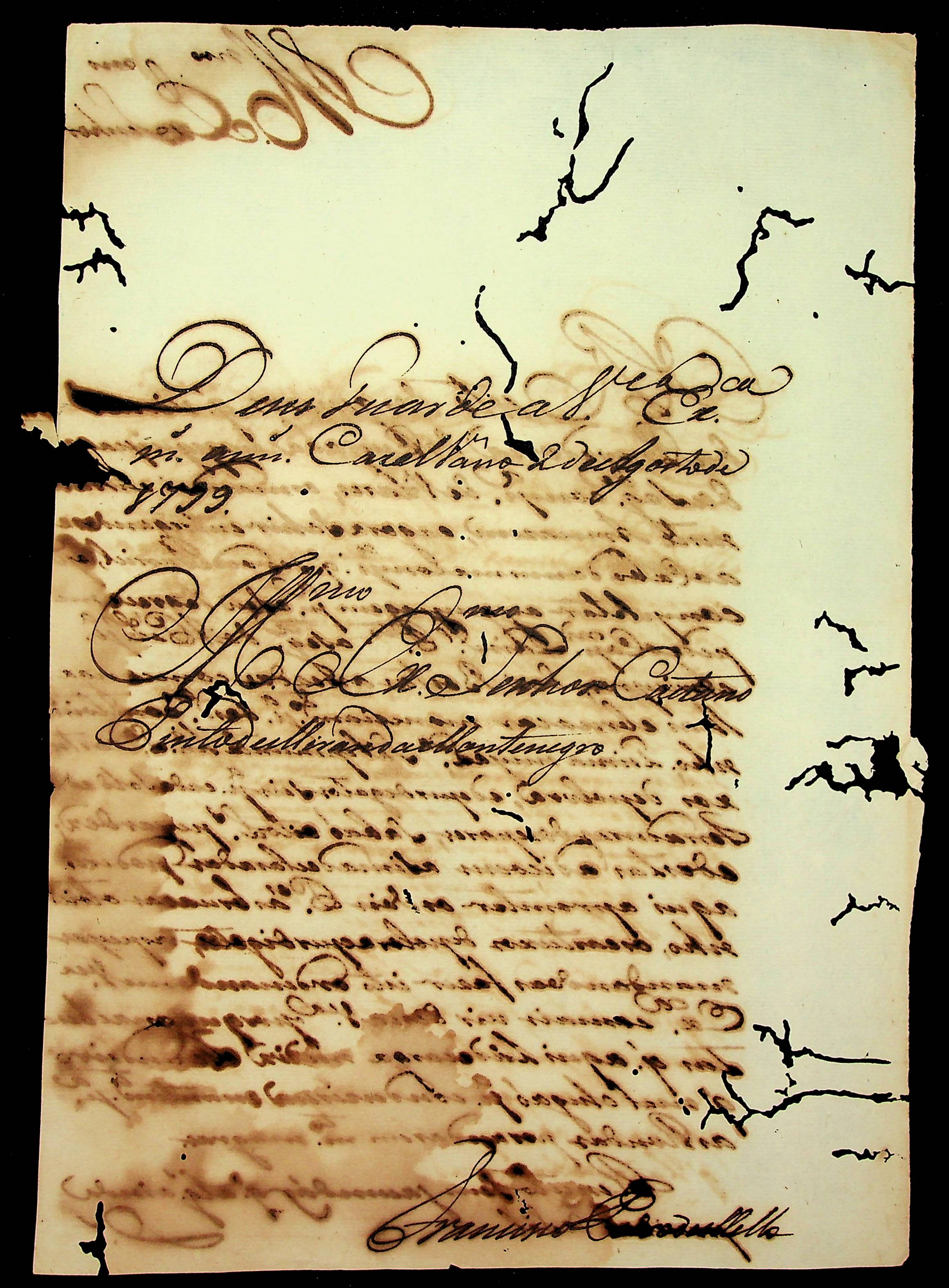 CARTA do [Comandante] Francisco Pedro de Melo ao [Governador e Capitão-General da Capitania de Mato Grosso] Caetano Pinto de Miranda e Montenegro.