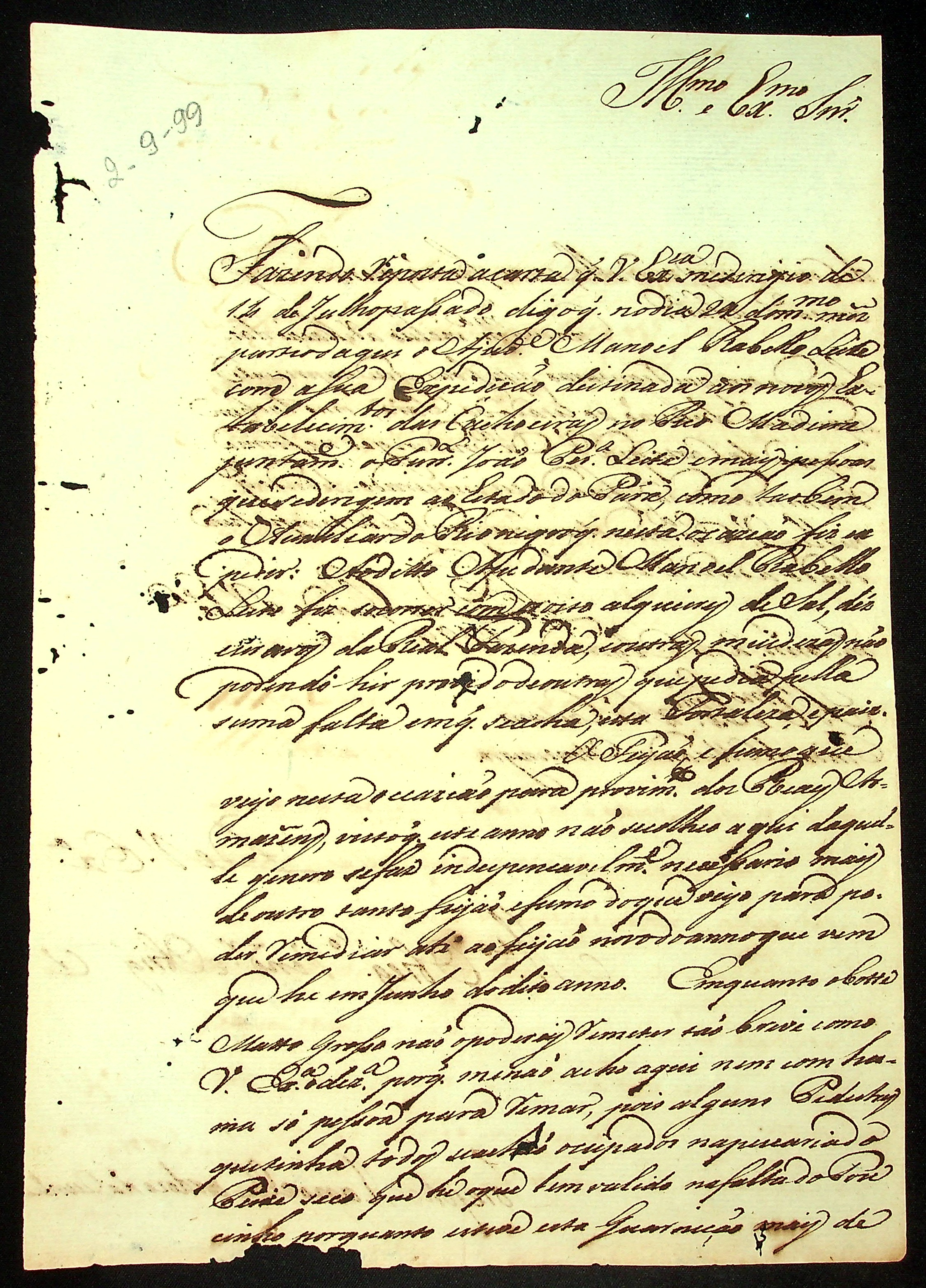 CARTA de José Manoel Cardoso da Cunha ao [Governador e Capitão-General da Capitania de Mato Grosso] Caetano Pinto de Miranda e Montenegro.