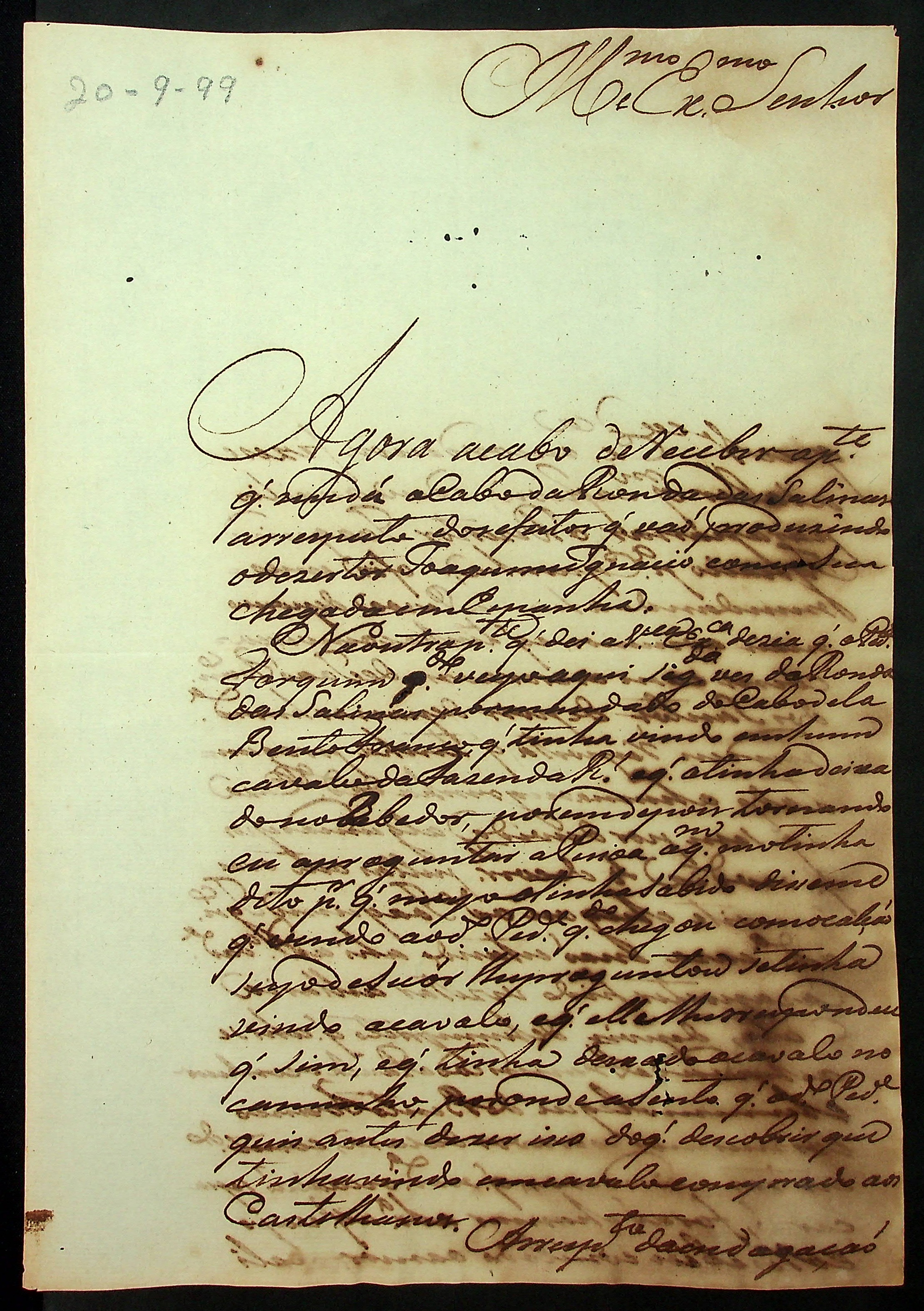 CARTA do [Alferes de Dragões e Comandante] Francisco Pedro de Melo ao [Governador e Capitão-General da Capitania de Mato Grosso] Caetano Pinto de Miranda e Montenegro.