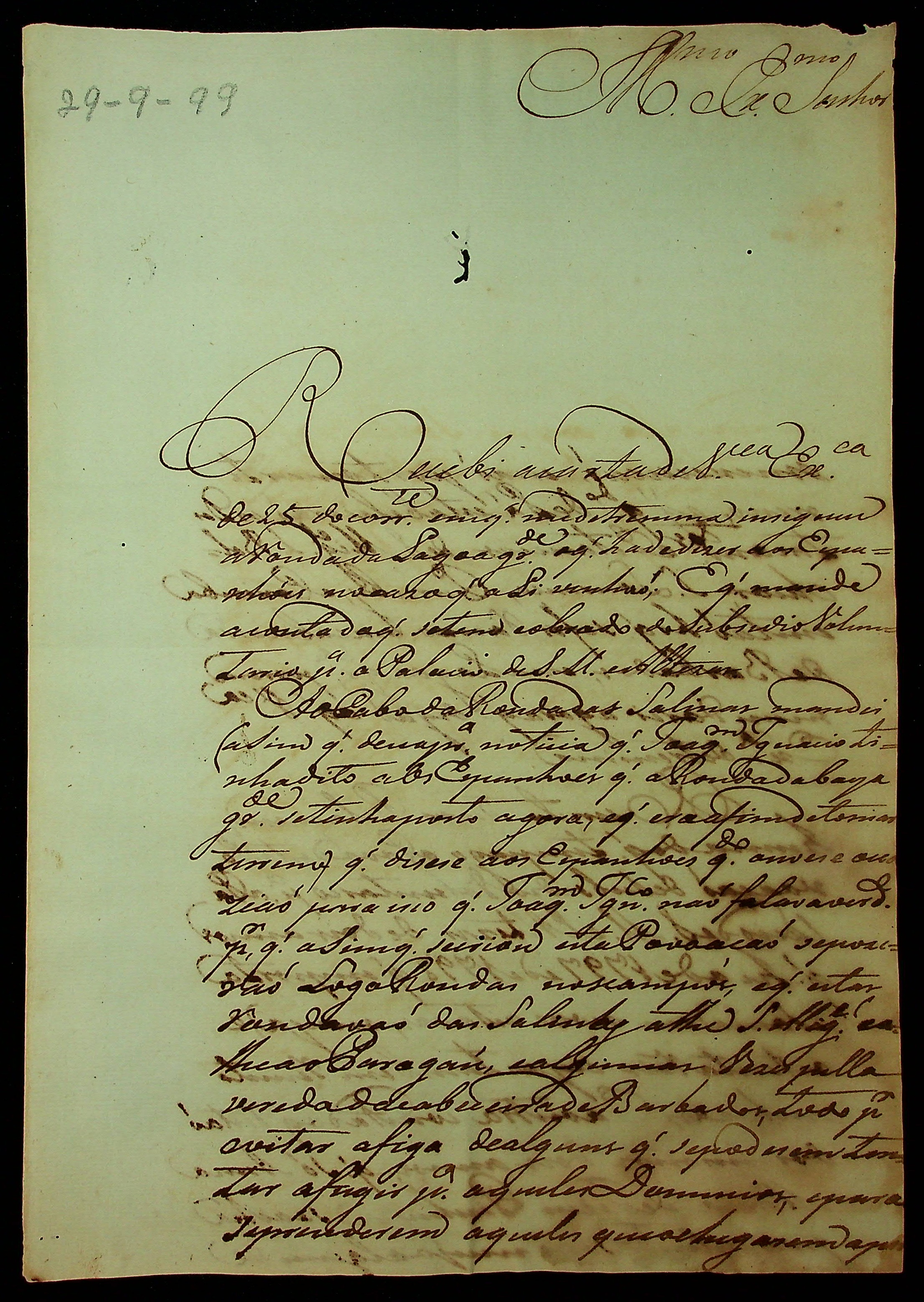 CARTA do [Alferes de Dragões e Comandante] Francisco Pedro de Melo ao [Governador e Capitão-General da Capitania de Mato Grosso] Caetano Pinto de Miranda e Montenegro.