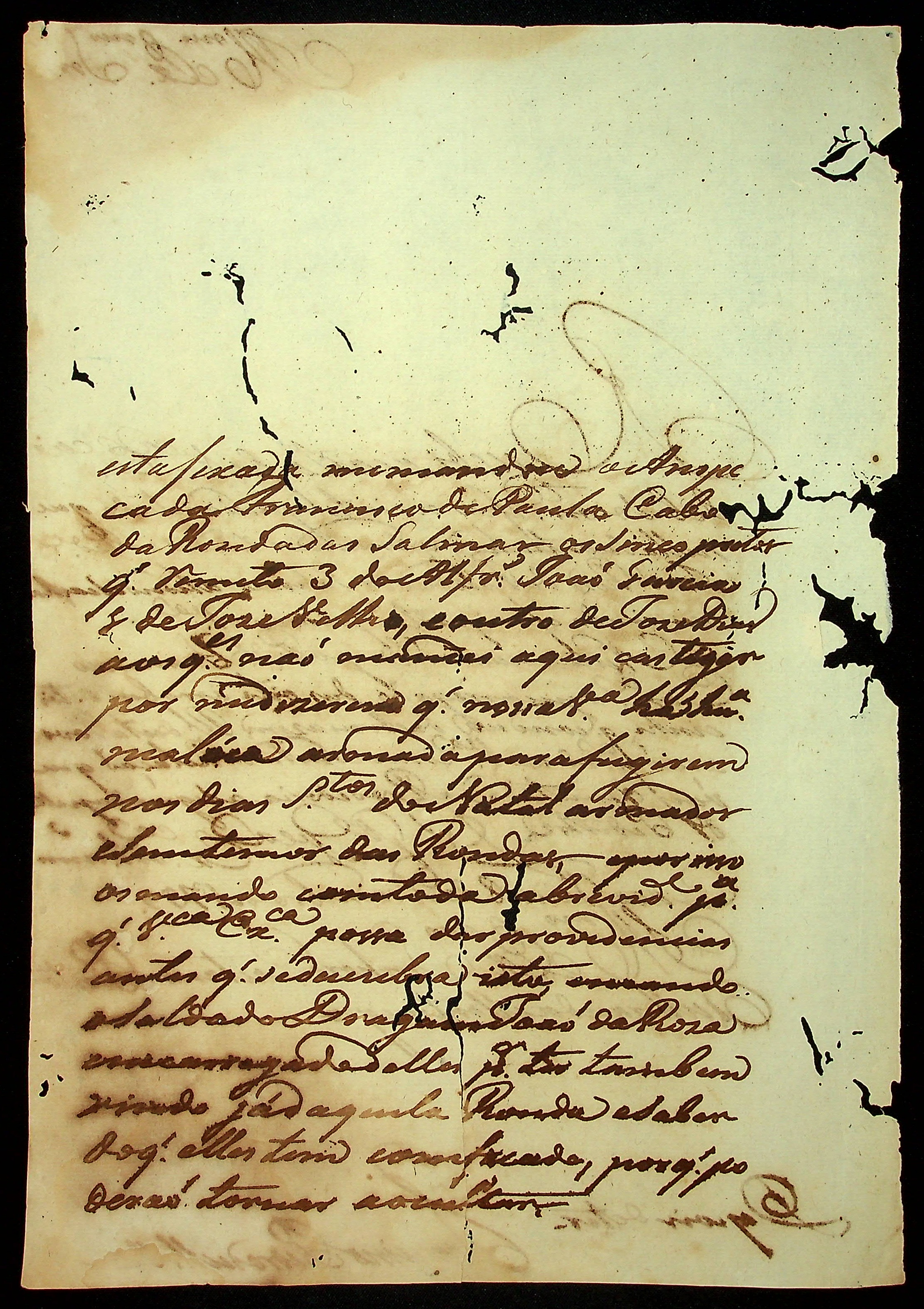 CARTA do [Alferes de Dragões e Comandante] Francisco Pedro de Melo ao [Governador e Capitão-General da Capitania de Mato Grosso] Caetano Pinto de Miranda e Montenegro.