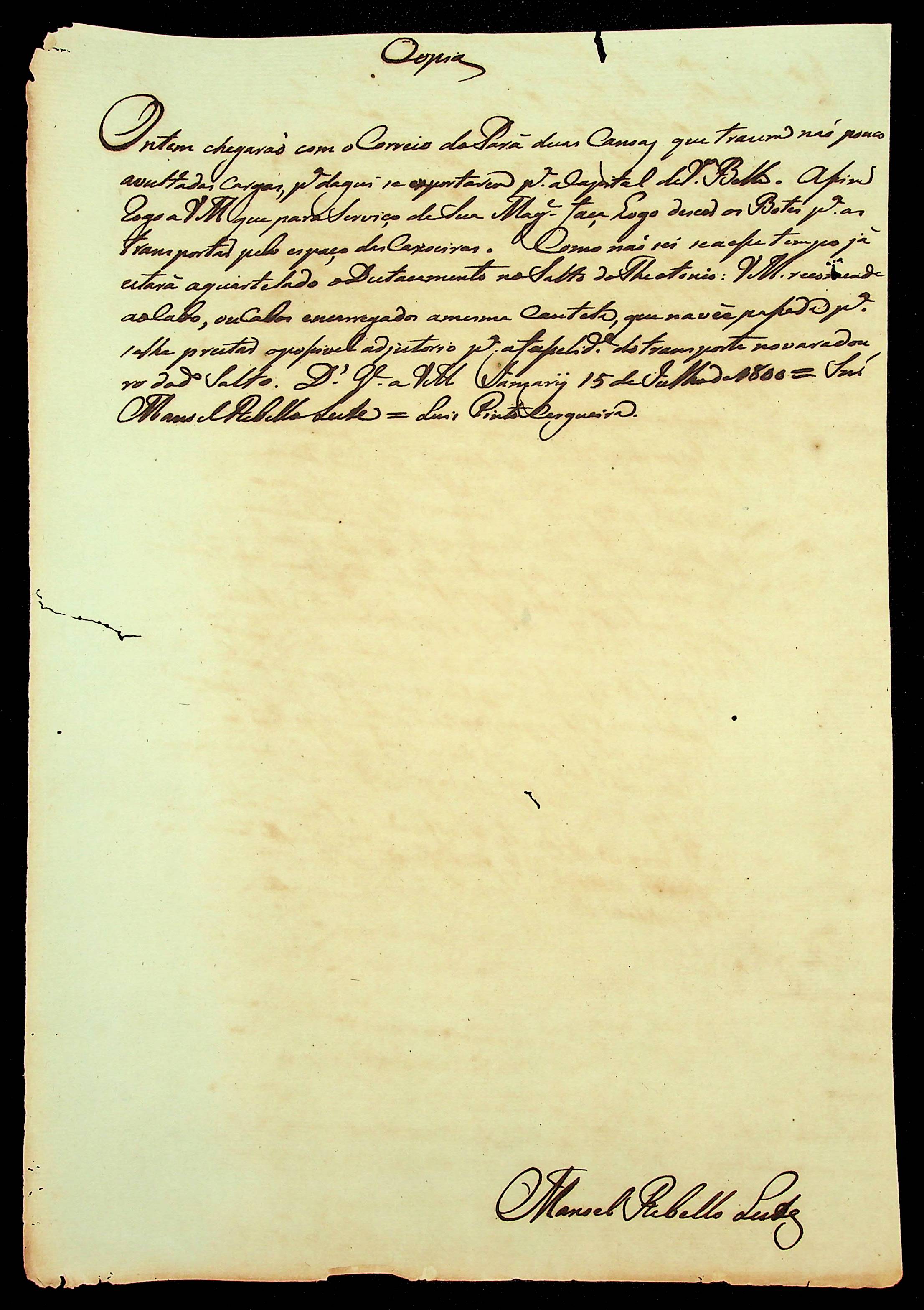 CARTA (cópia) do [Ouvidor da Capitania de Rio Negro] Luís Pinto Cerqueira ao [Ajudante e Comandante] Manoel [Rabelo] Leite.