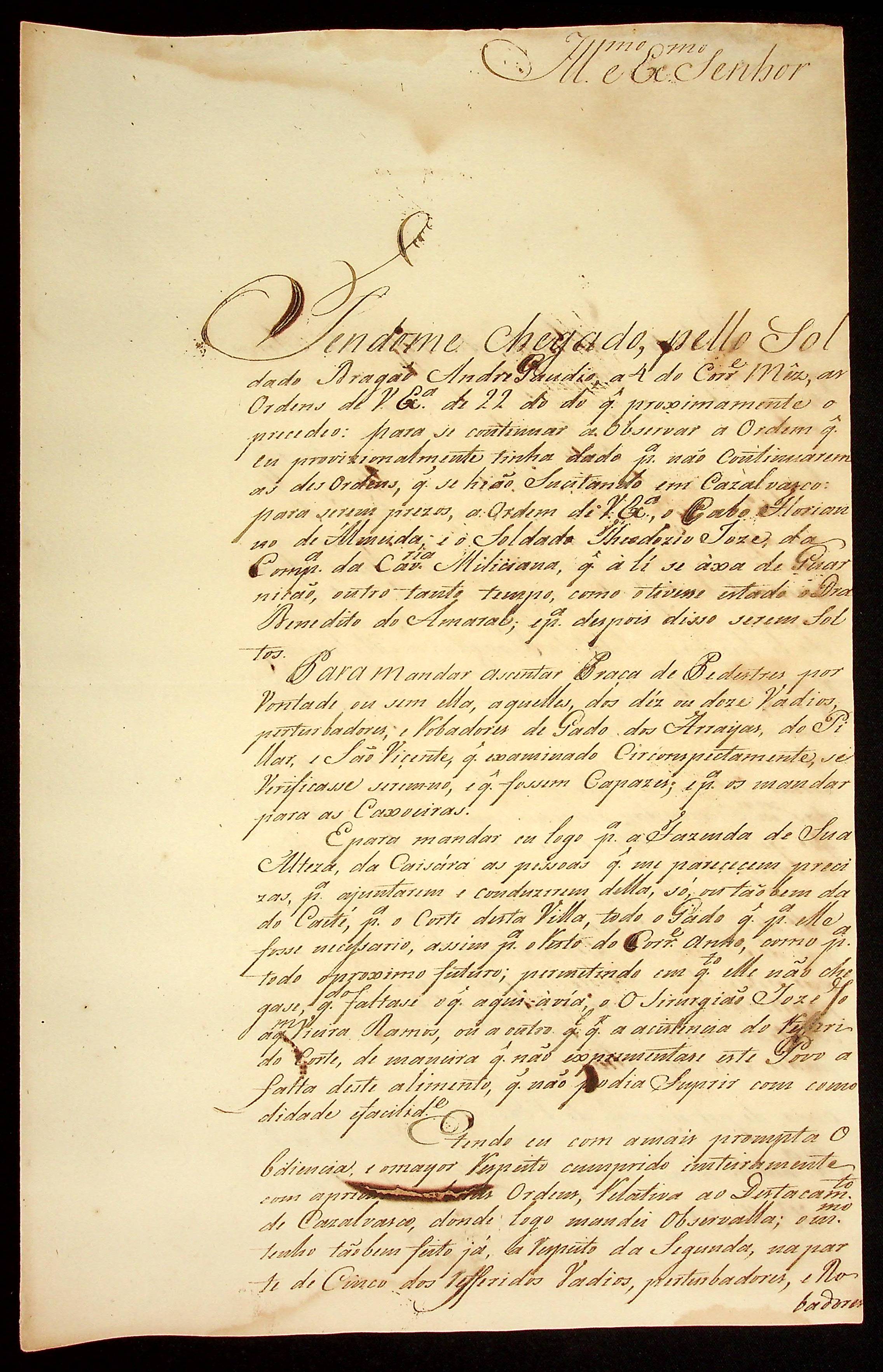 CARTA do [Coronel] Antônio Felipe da Cunha Ponte ao [Governador e Capitão-General da Capitania de Mato Grosso] Caetano Pinto de Miranda e Montenegro.