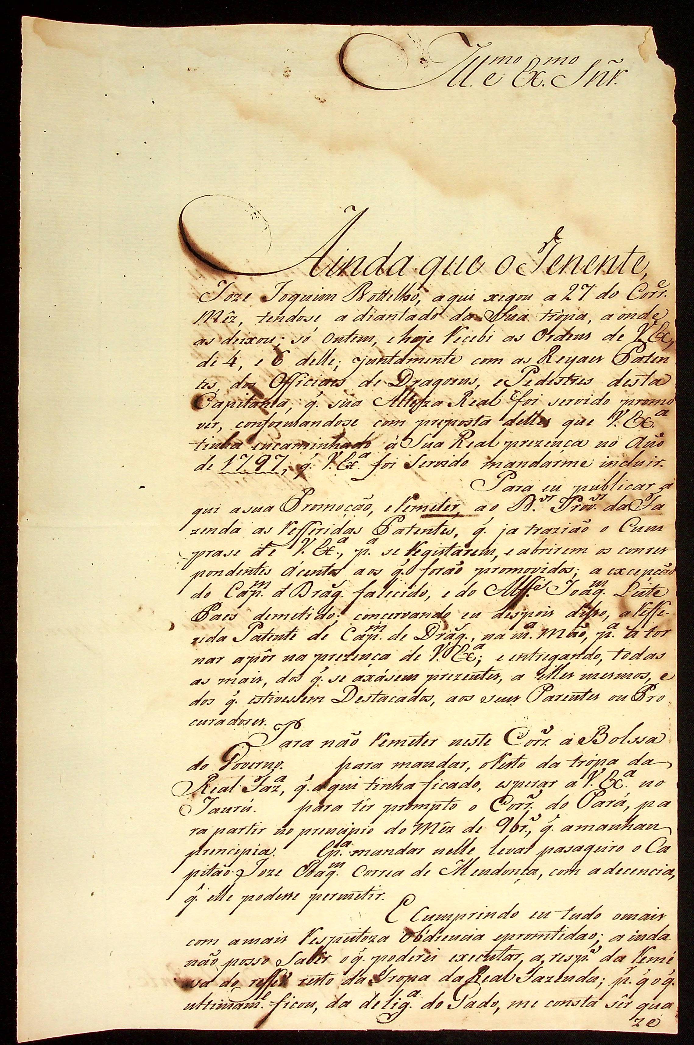 CARTA do [Coronel] Antônio Felipe da Cunha Ponte ao [Governador e Capitão-General da Capitania de Mato Grosso] Caetano Pinto de Miranda e Montenegro.