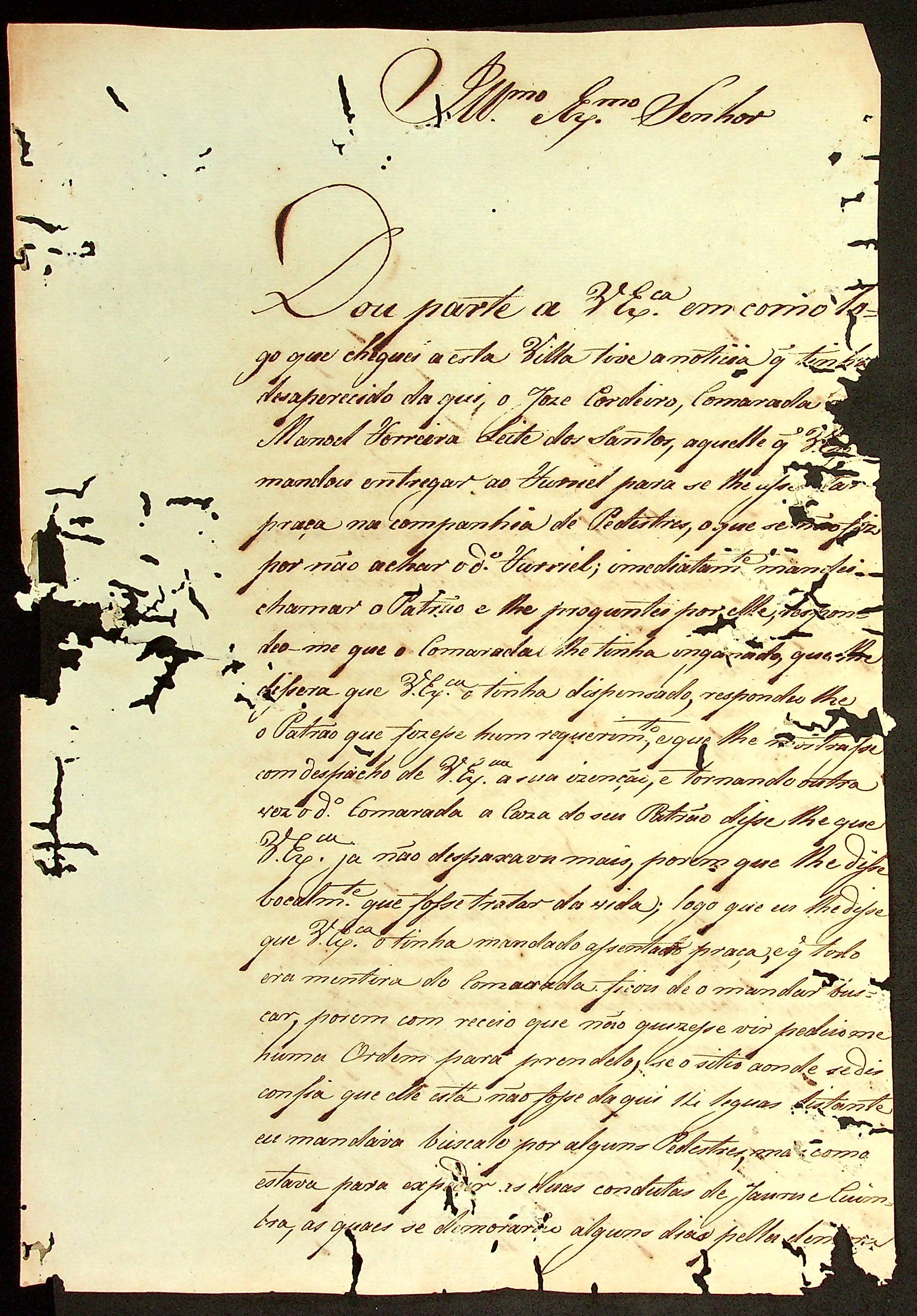 CARTA do [Ajudante de Comandante] Luiz Eller ao [Governador e Capitão-General da Capitania de Mato Grosso] Caetano Pinto de Miranda e Montenegro.