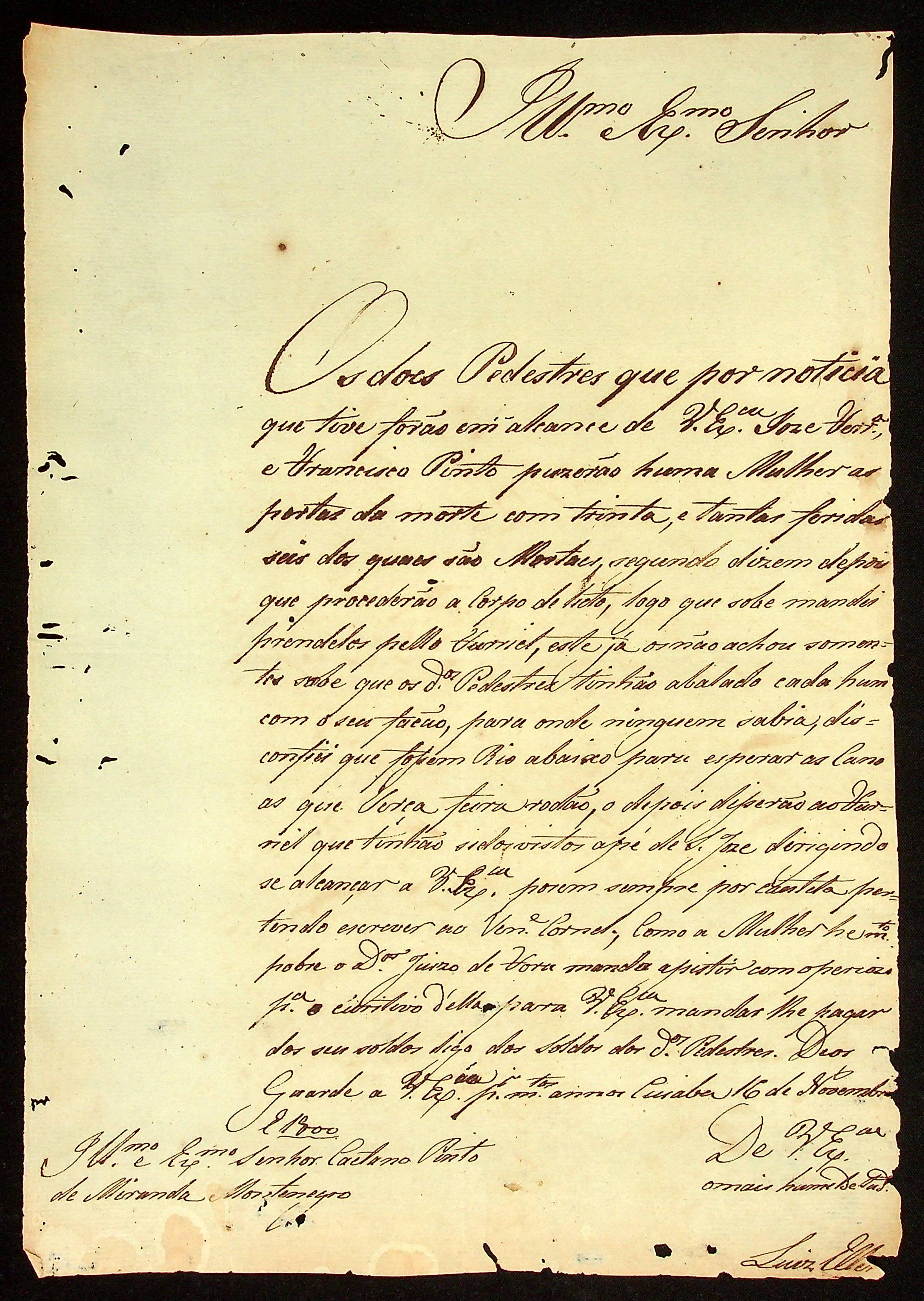 CARTA do [Ajudante de Comandante] Luiz Eller ao [Governador e Capitão-General da Capitania de Mato Grosso] Caetano Pinto de Miranda e Montenegro.