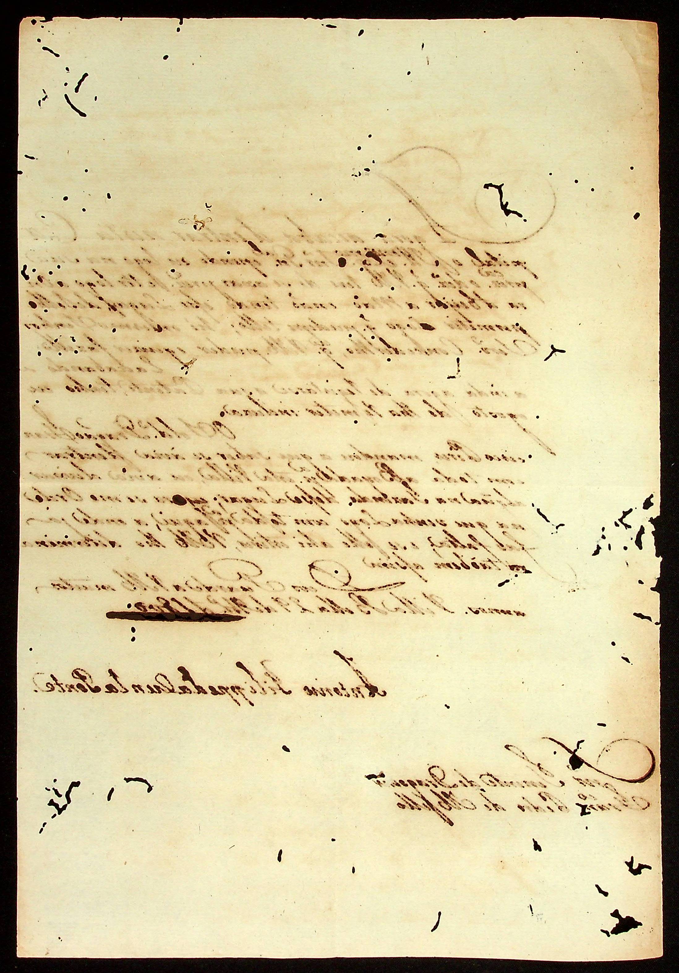 CARTA do [Coronel] Antônio de Cunha Ponte ao Tenente de Dragões Francisco Pedro de Melo.