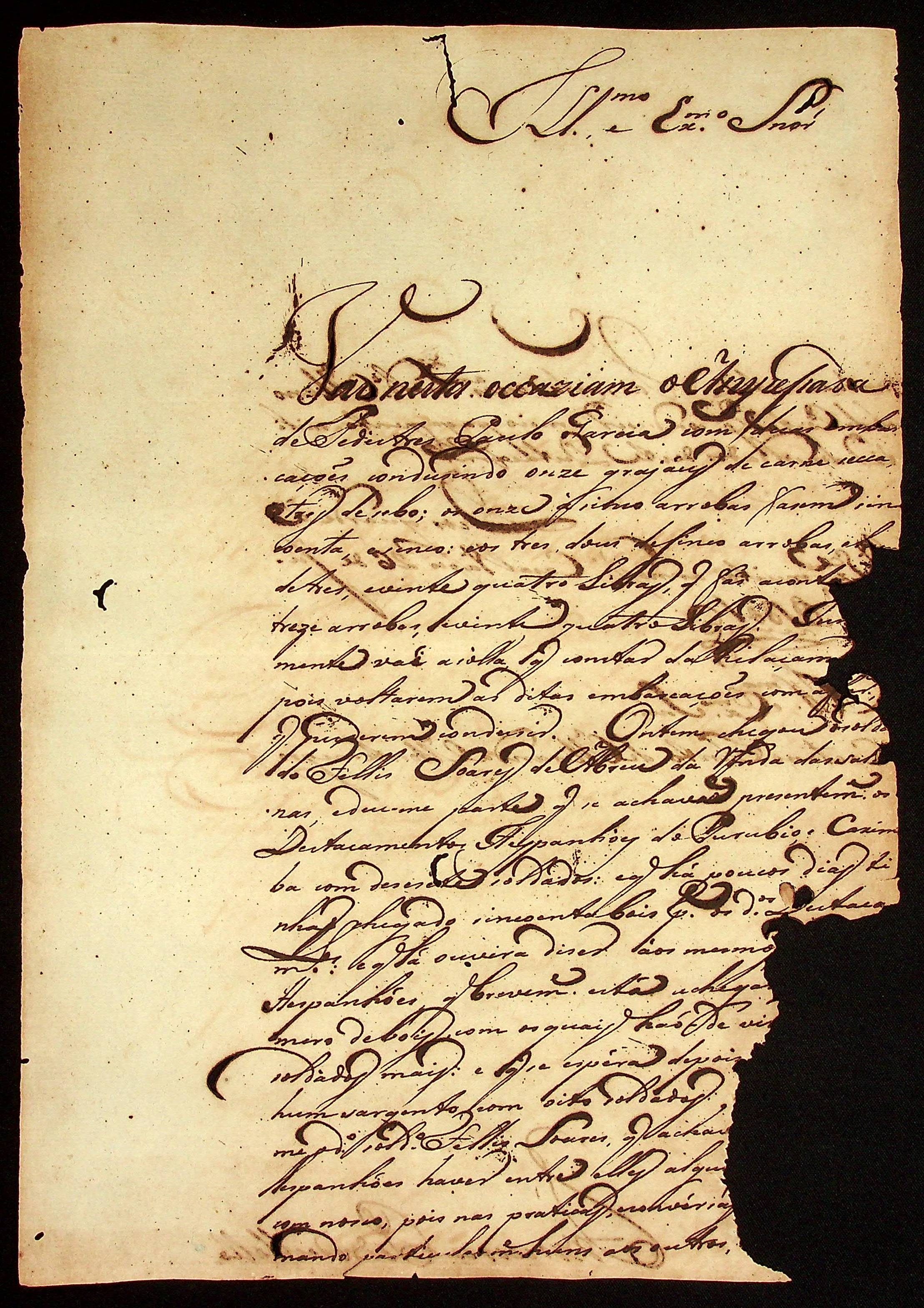 CARTA do [Alferes de Dragões e Comandante] Francisco Pedro de Melo ao [Governador e Capitão-General da Capitania de Mato Grosso] Caetano Pinto de Miranda e Montenegro.