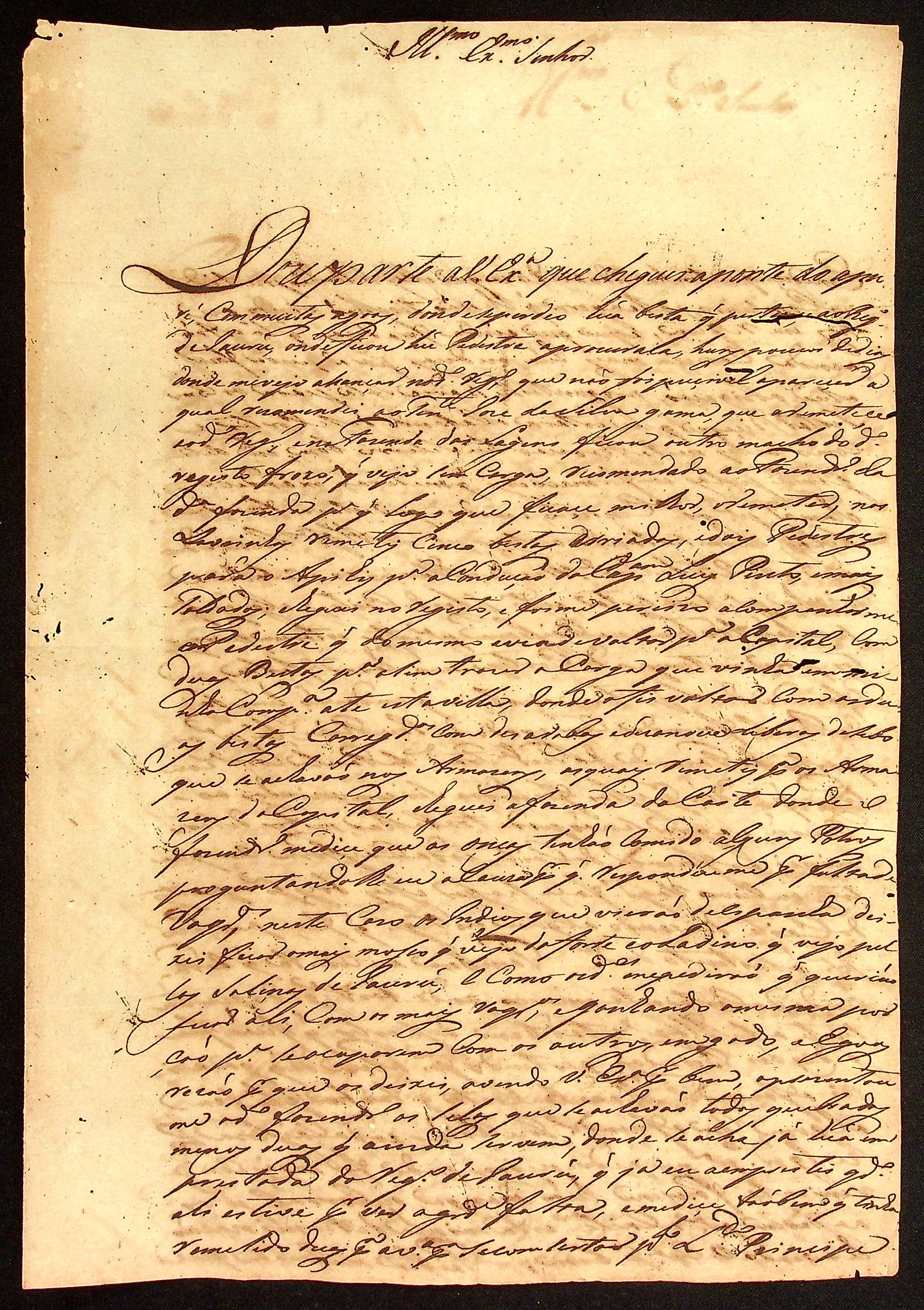CARTA do Marcelino Ribeiro ao [Governador e Capitão-General da Capitania de Mato Grosso] Caetano Pinto de Miranda e Montenegro.