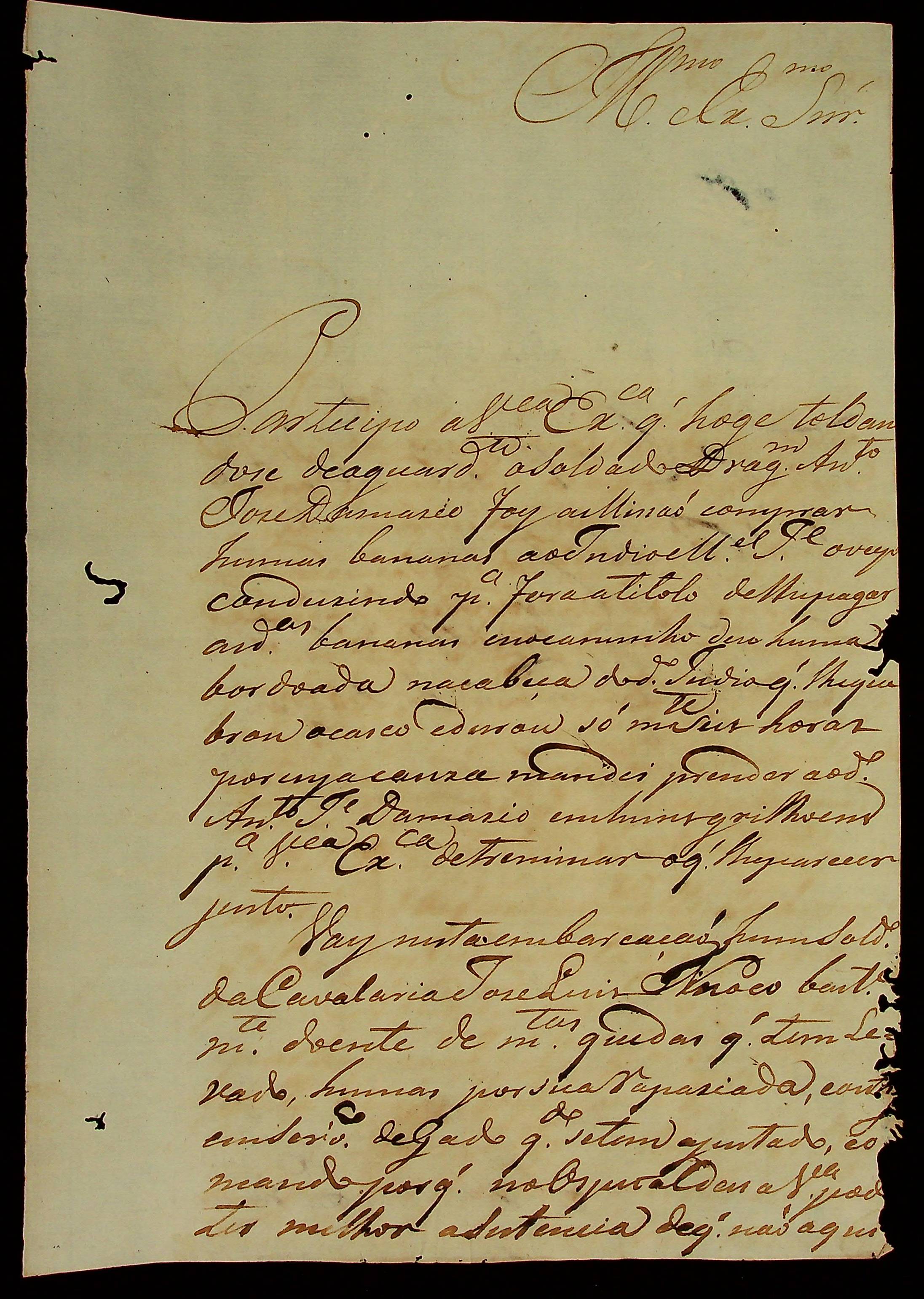 CARTA do [Tenente de Dragões e Comandante] Francisco Pedro de Melo ao [Governador e Capitão-General da Capitania de Mato Grosso] Caetano Pinto de Miranda e Montenegro.