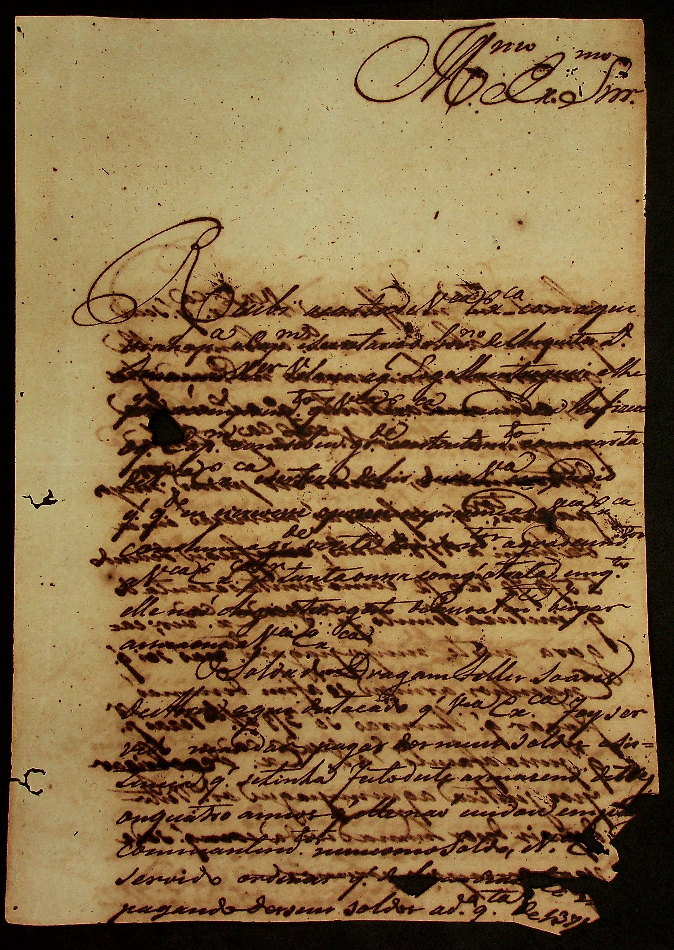 CARTA do [Tenente de Dragões e Comandante] Francisco Pedro de Melo ao Governador e Capitão-General da Capitania de Mato Grosso Caetano Pinto de Miranda e Montenegro.