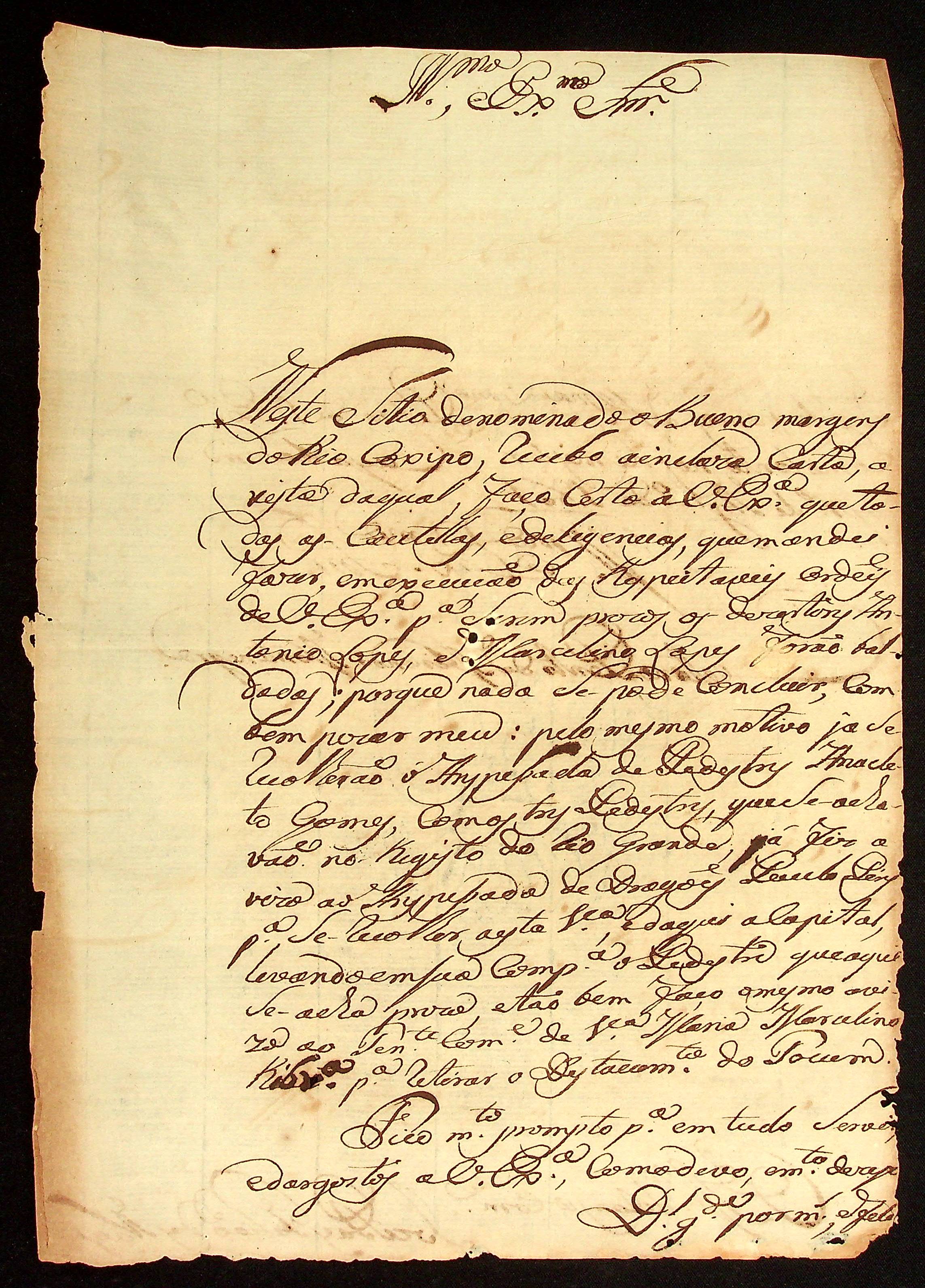 CARTA do Mestre de Campo e comandante José Paes Falcão das Neves ao [Governador e Capitão-General da Capitania de Mato Grosso] Caetano Pinto de Miranda e Montenegro.
