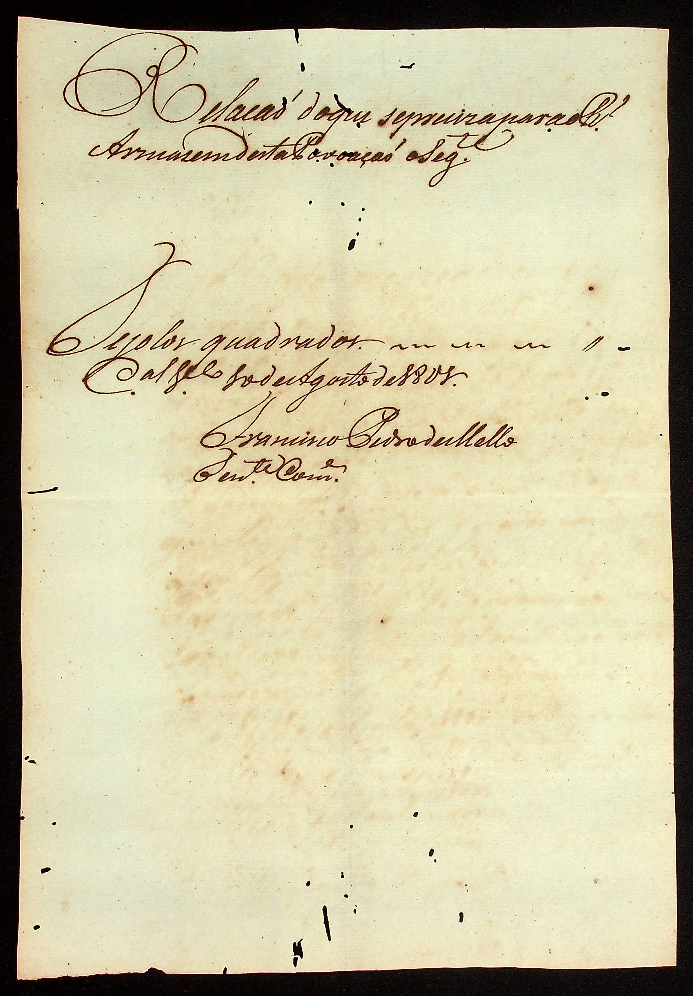 CARTA do [Comandante da Povoação de Casalvasco] Francisco Pedro Mello ao [Governador e Capitão-General da Capitania de Mato Grosso] Caetano Pinto de Miranda e Montenegro.