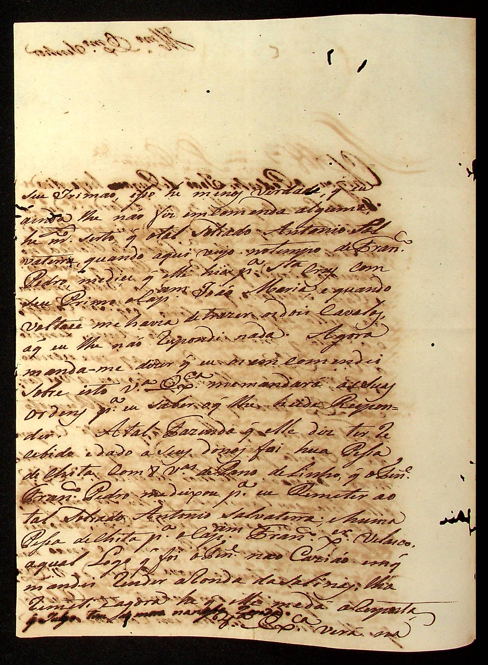 CARTA do [Alferes] João Pereira Leite ao [Governador e Capitão-General da Capitania de Mato Grosso] Caetano Pinto de Miranda e Montenegro.
