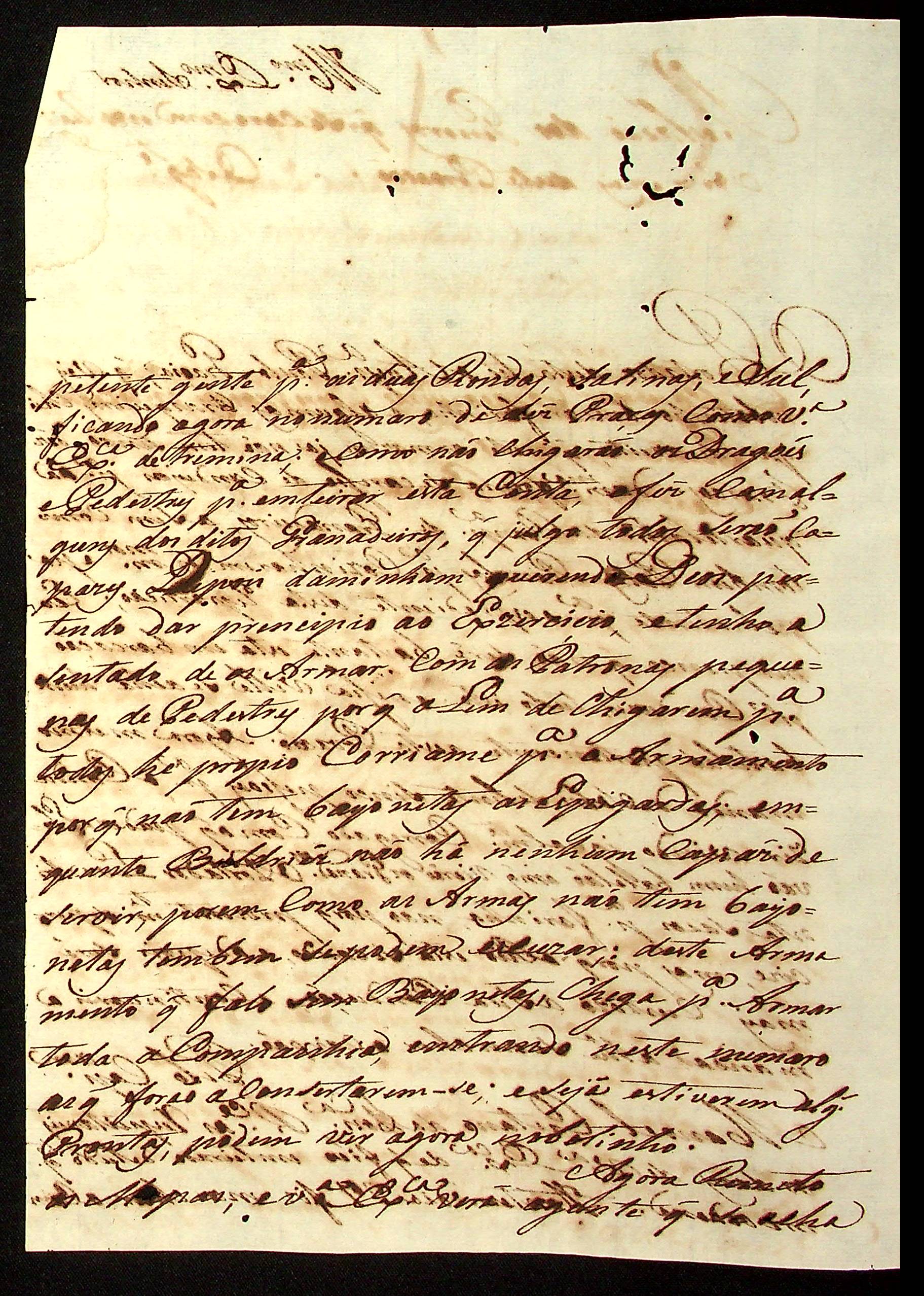 CARTA do [Alferes] João Pereira Leite ao [Governador e Capitão-General da Capitania de Mato Grosso] Caetano Pinto de Miranda e Montenegro.