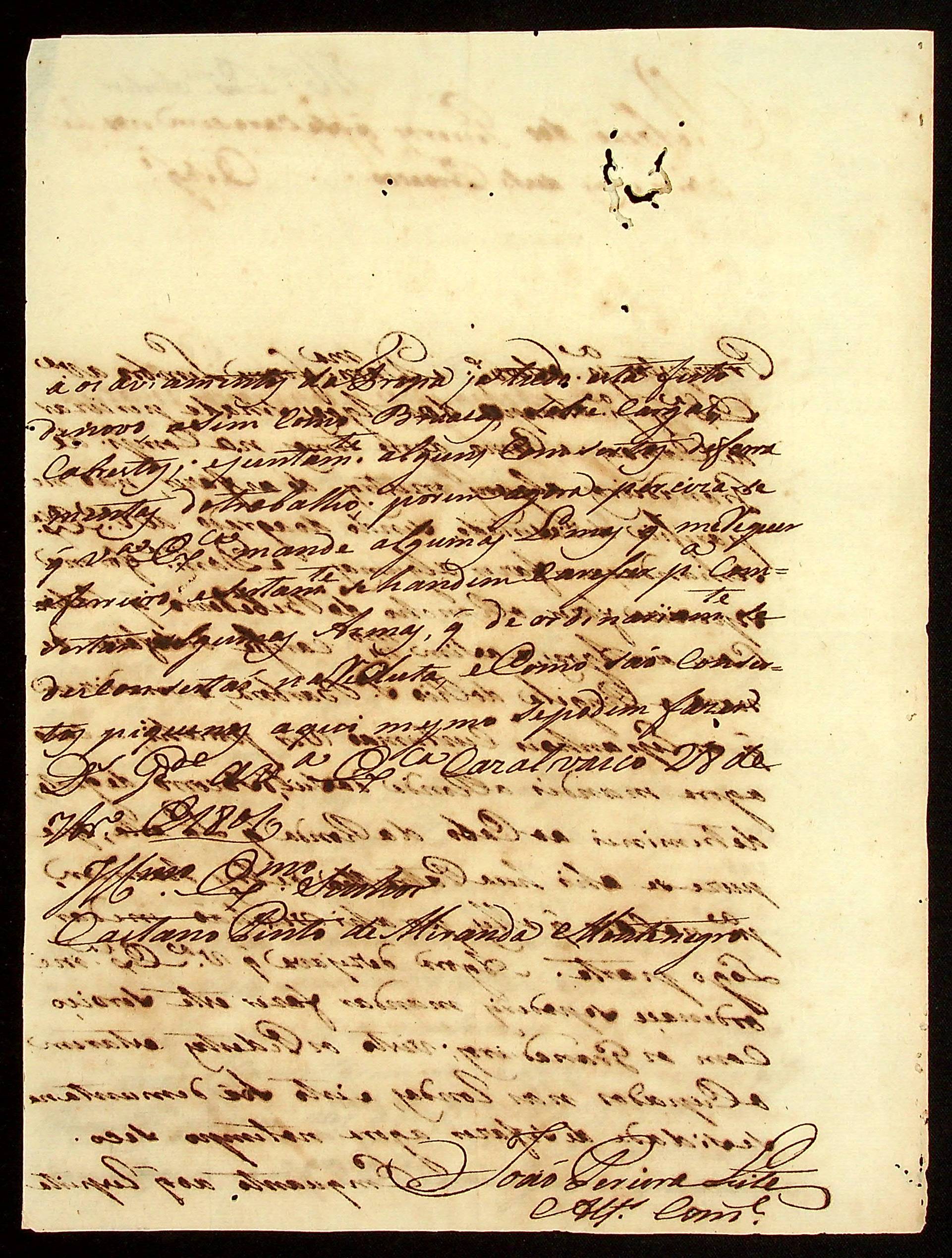 CARTA do [Alferes] João Pereira Leite ao [Governador e Capitão-General da Capitania de Mato Grosso] Caetano Pinto de Miranda e Montenegro.
