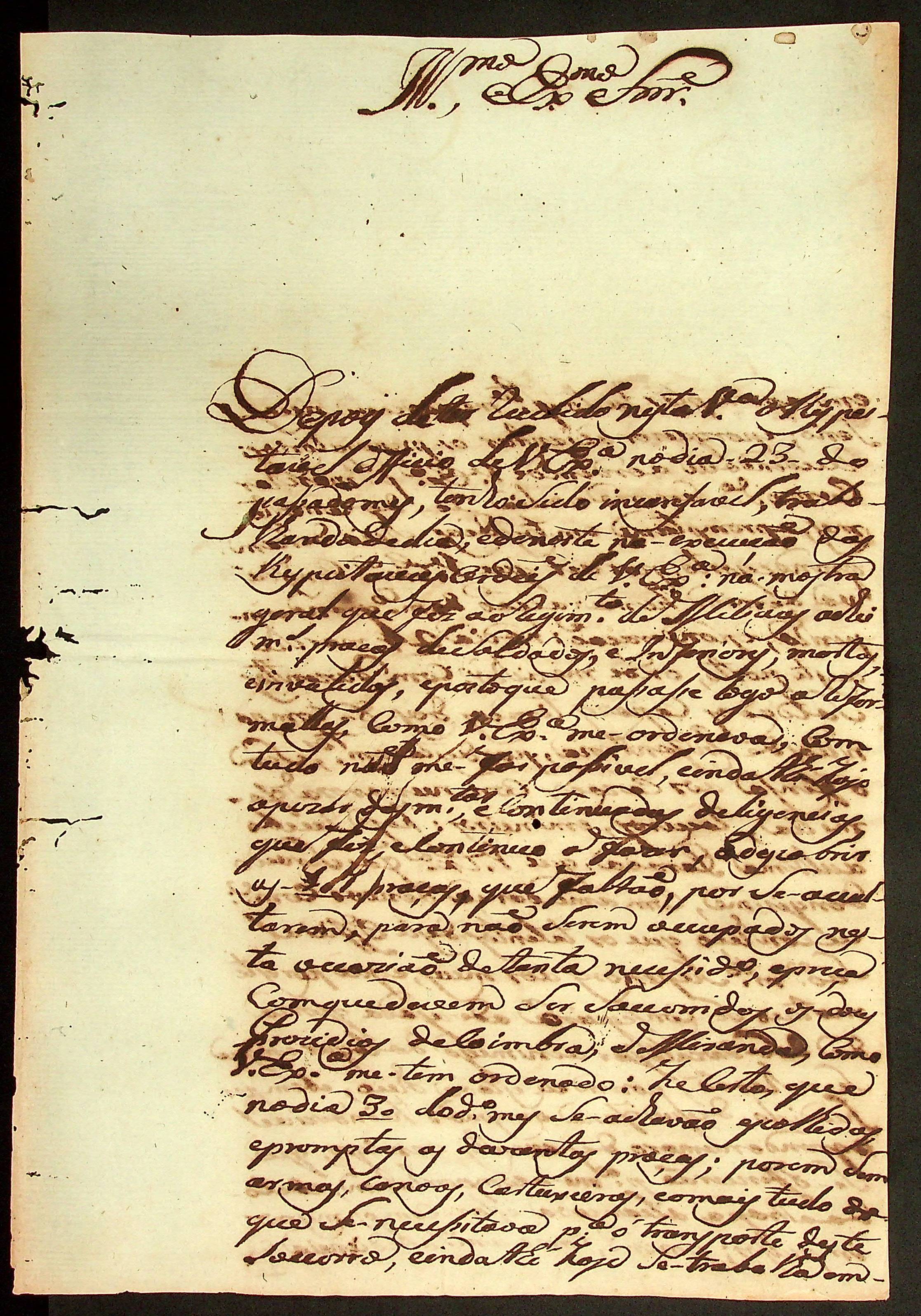 CARTA do [Mestre de Campo e Comandante] José Paes Falcão das Neves ao [Governador e Capitão-General da Capitania de Mato Grosso] Caetano Pinto de Miranda e Montenegro.