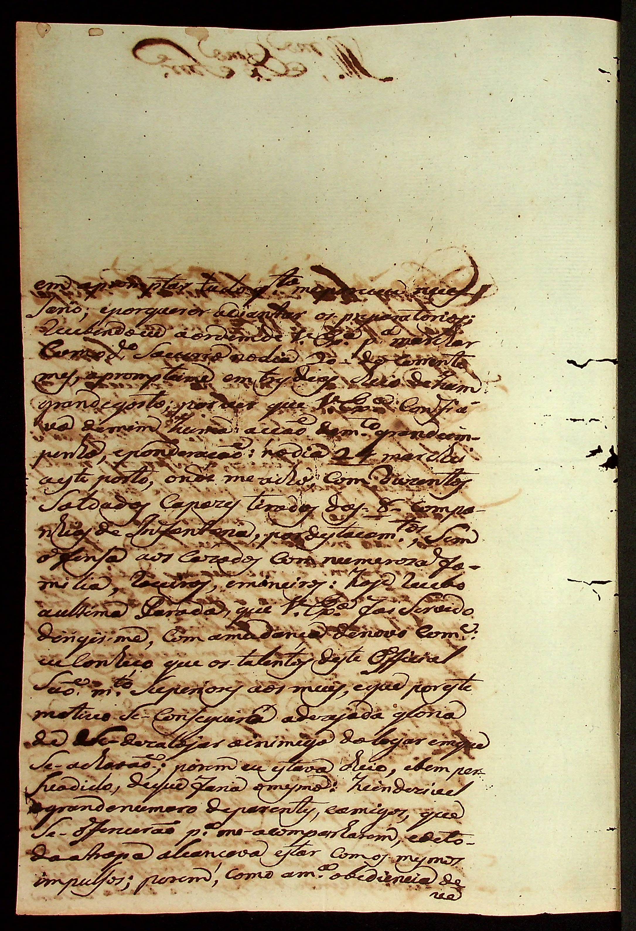 CARTA do [Mestre de Campo e Comandante] José Paes Falcão das Neves ao [Governador e Capitão-General da Capitania de Mato Grosso] Caetano Pinto de Miranda e Montenegro.