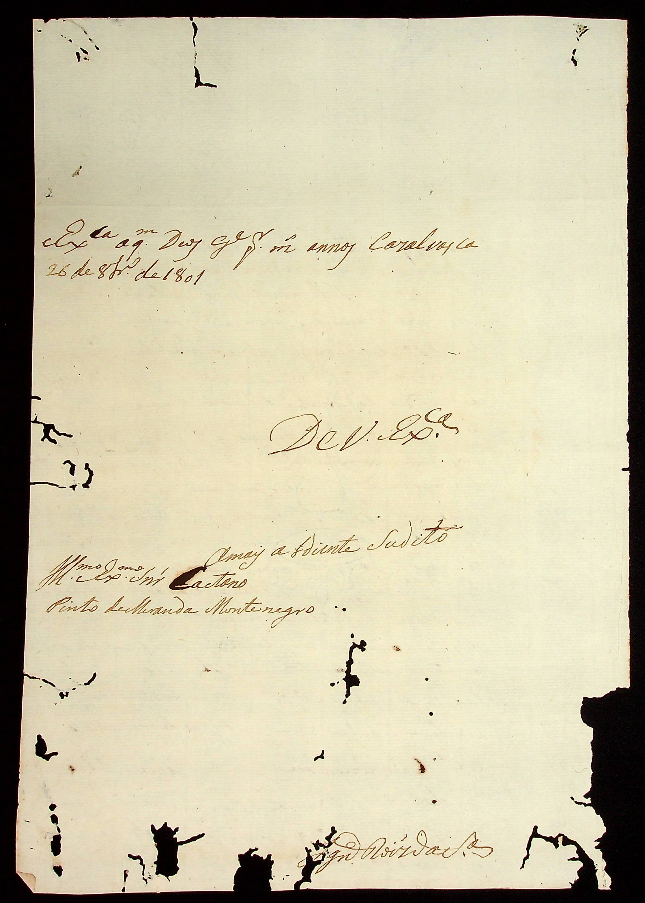 CARTA do [Tenente-Coronel] Inácio Rodrigues da Silva ao [Governador e Capitão-General da Capitania de Mato Grosso] Caetano Pinto de Miranda e Montenegro.
