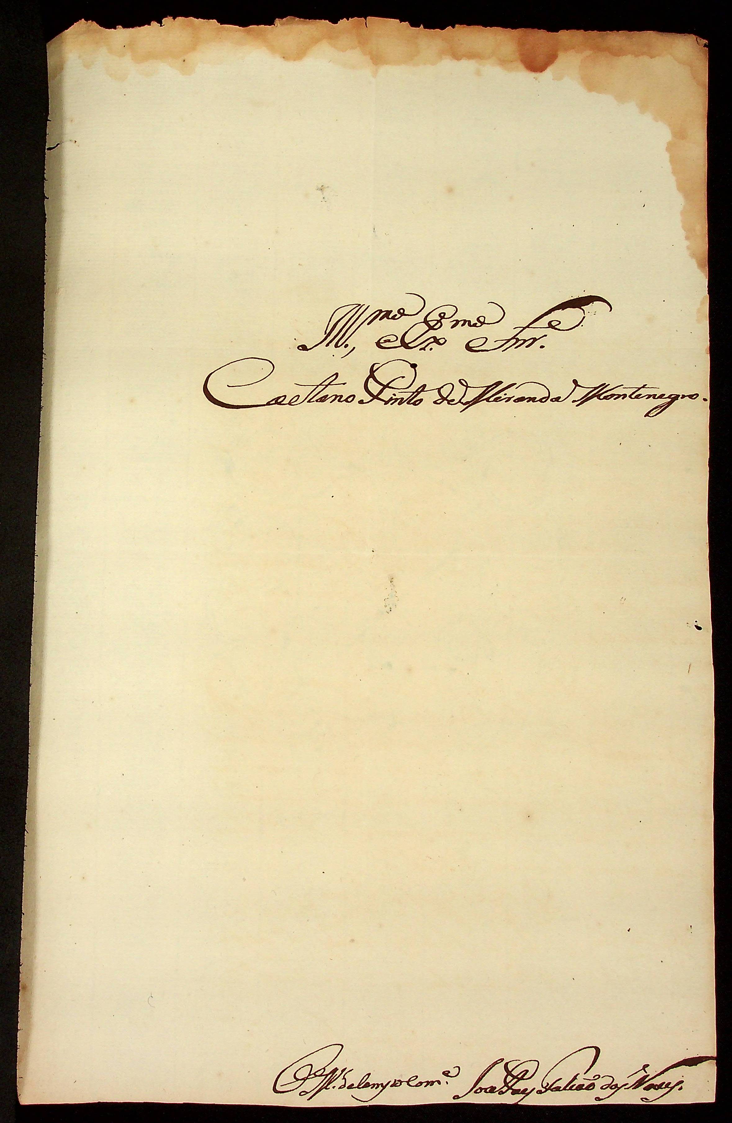 CARTA do Mestre de Campo e Comandante José Paes Falcão das Neves ao [Governador e Capitão-General da Capitania de Mato Grosso] Caetano Pinto de Miranda Montenegro.