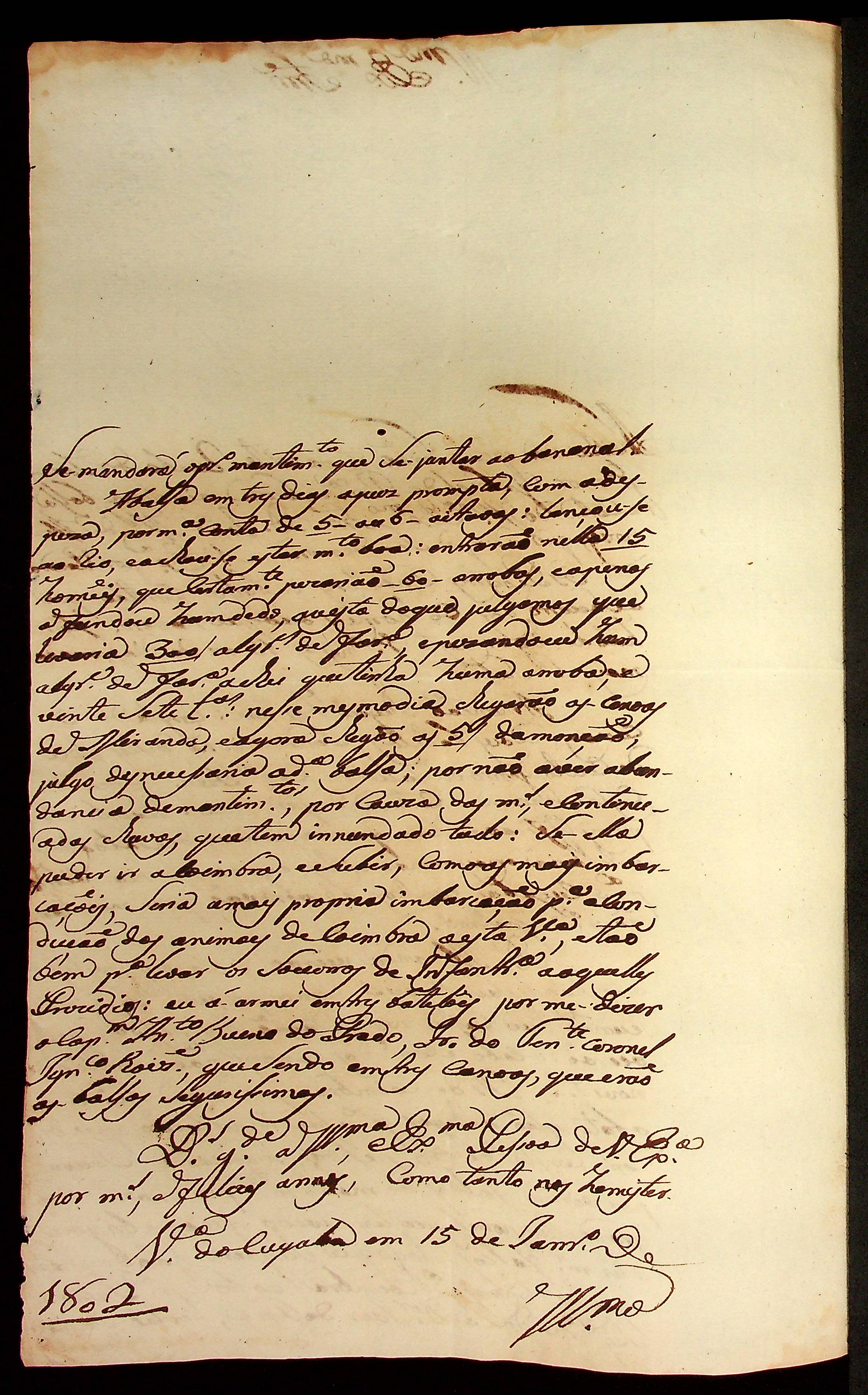 CARTA do Mestre de Campo e Comandante José Paes Falcão das Neves ao [Governador e Capitão-General da Capitania de Mato Grosso] Caetano Pinto de Miranda Montenegro.