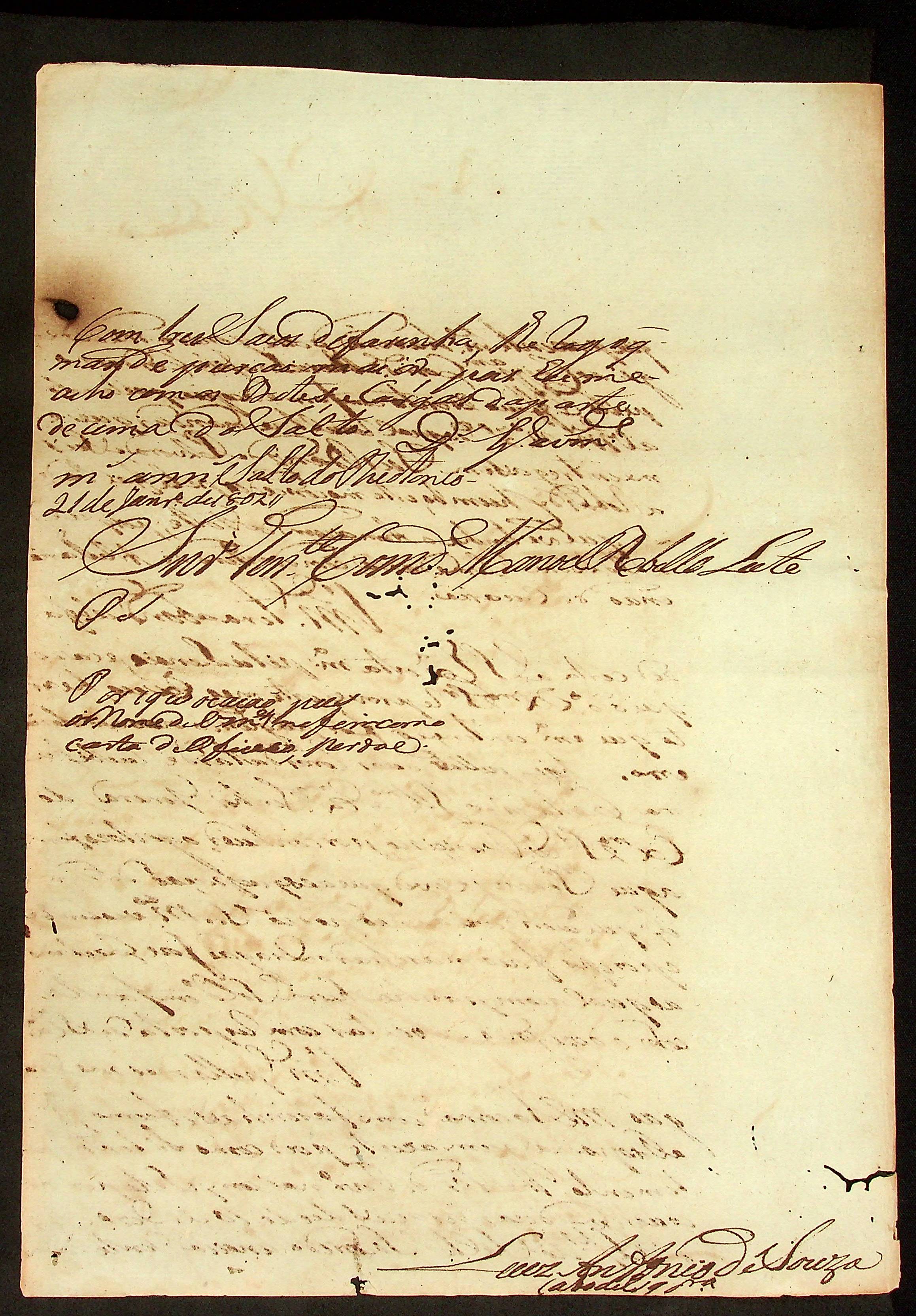 CARTA (incompleta) de Luís Antônio de Souza ao Comandante Manoel [Rabelo] Leite.