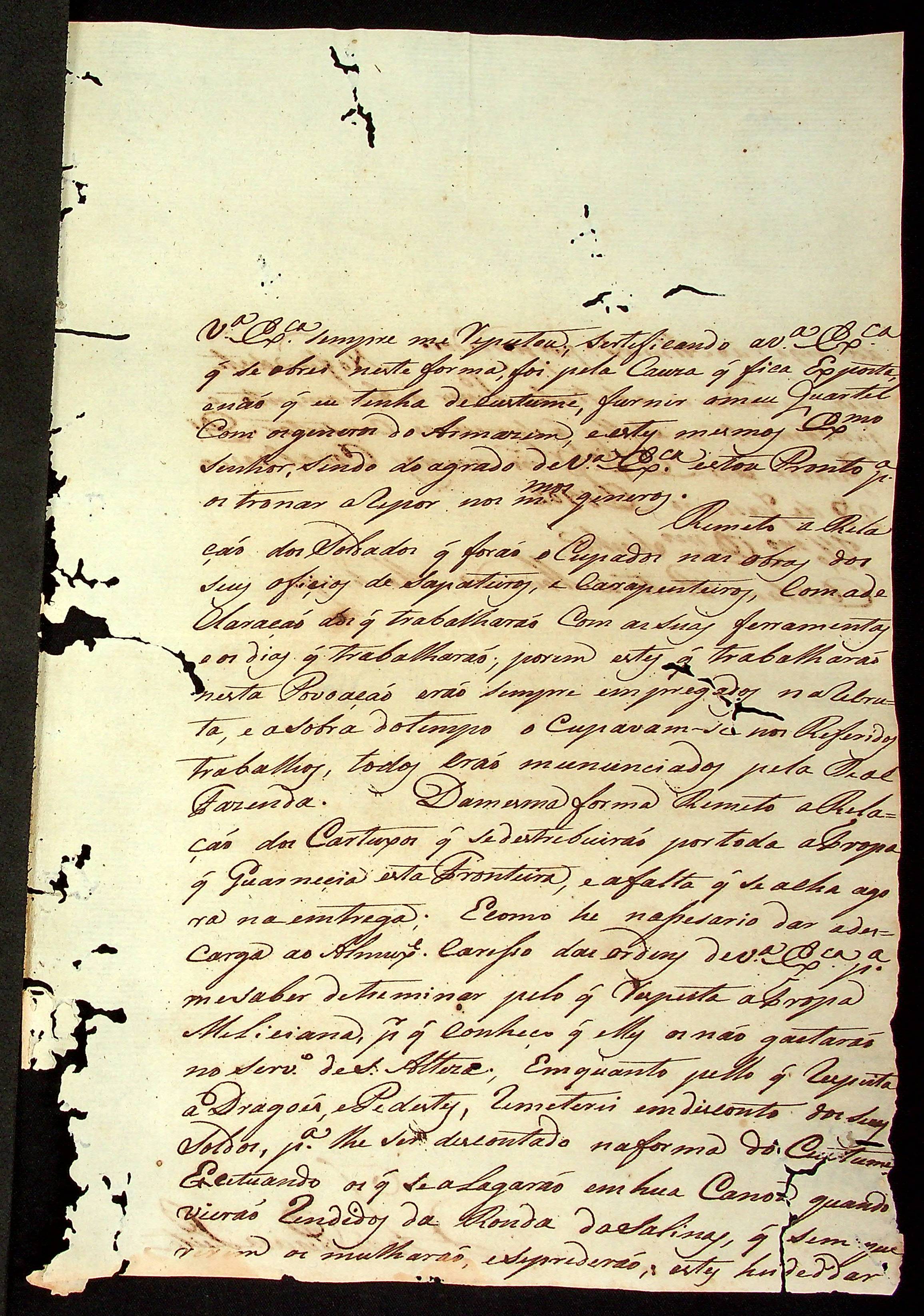 CARTA do [Alferes e Comandante] João Pereira Leite ao [Governador e Capitão-General da Capitania de Mato Grosso] Caetano Pinto de Miranda Montenegro.
