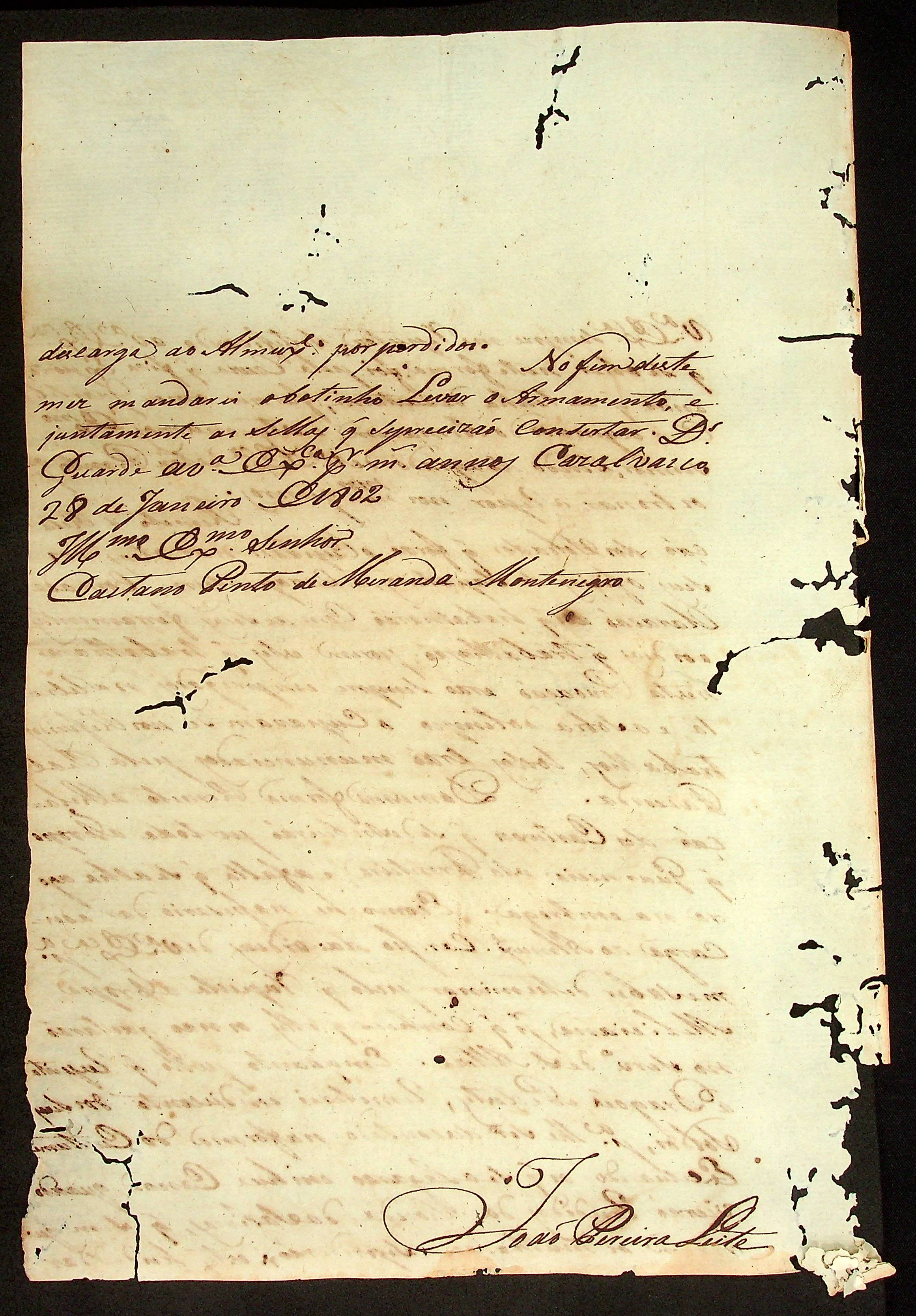 CARTA do [Alferes e Comandante] João Pereira Leite ao [Governador e Capitão-General da Capitania de Mato Grosso] Caetano Pinto de Miranda Montenegro.
