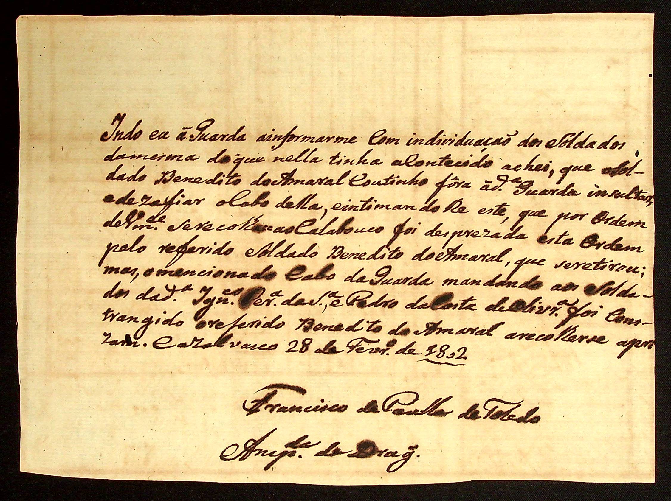 CARTA do [Alferes e Comandante] João Pereira Leite ao [Governador e Capitão-General da Capitania de Mato Grosso] Caetano Pinto de Miranda Montenegro.