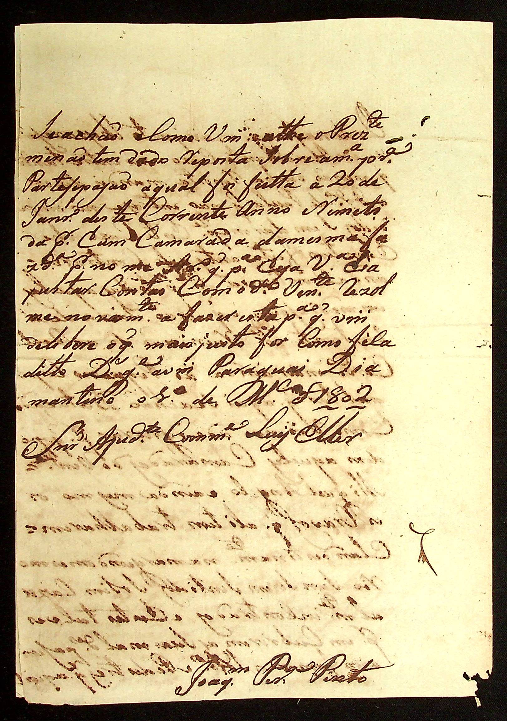 CARTA (incompleta) de Joaquim Pereira Pinto ao Ajudante Comandante Luís Eller.