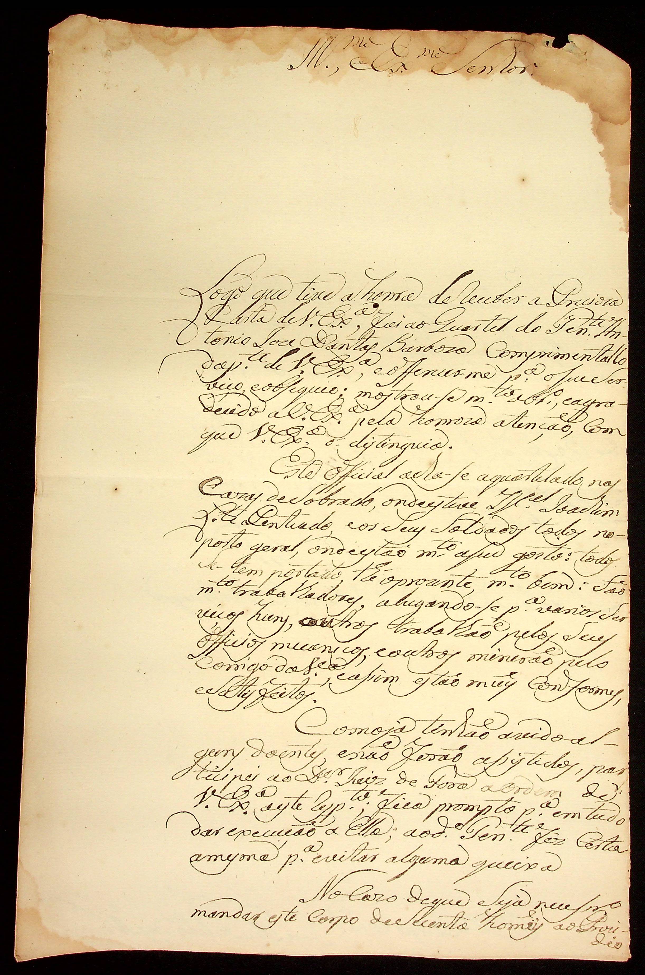 CARTA do Mestre de Campo e Comandante José Paes Falcão das Neves ao [Governador e Capitão-General da Capitania de Mato Grosso] Caetano Pinto de Miranda Montenegro.