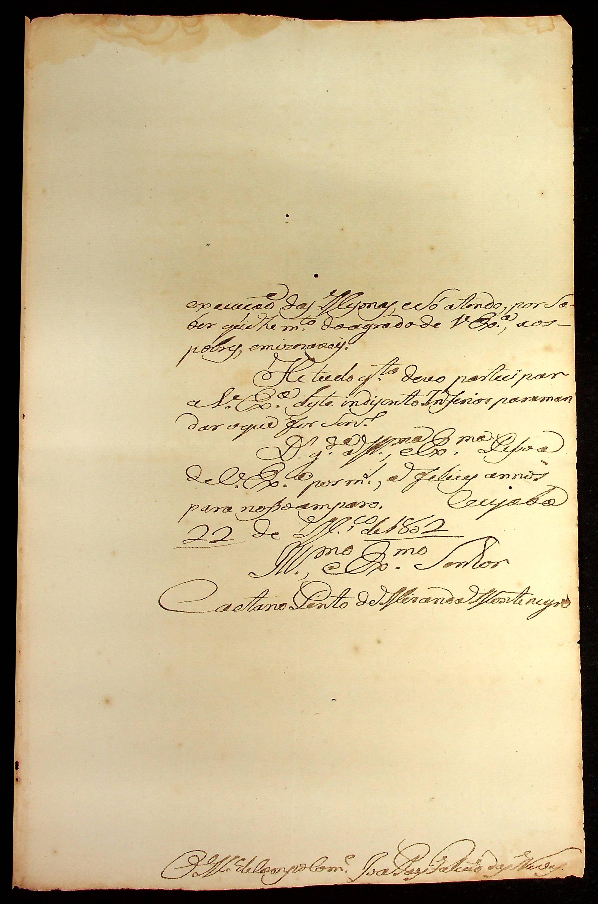 CARTA do Mestre de Campo e Comandante José Paes Falcão das Neves ao [Governador e Capitão-General da Capitania de Mato Grosso] Caetano Pinto de Miranda Montenegro.