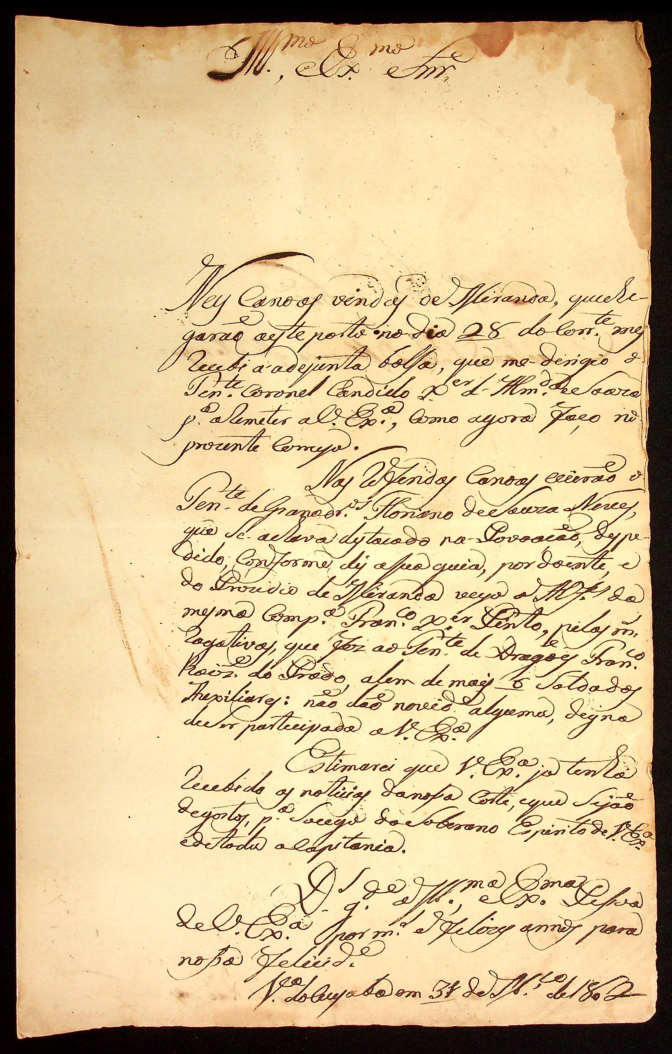 CARTA do Mestre de Campo e Comandante José Paes Falcão das Neves ao [Governador e Capitão-General da Capitania de Mato Grosso] Caetano Pinto de Miranda Montenegro.
