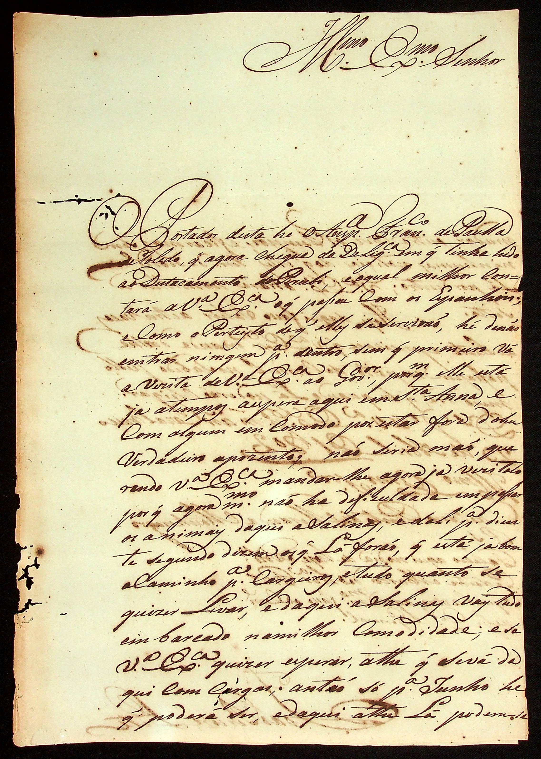 CARTA do [Alferes e Comandante] João Pereira Leite ao [Governador e Capitão-General da Capitania de Mato Grosso] Caetano Pinto de Miranda Montenegro.