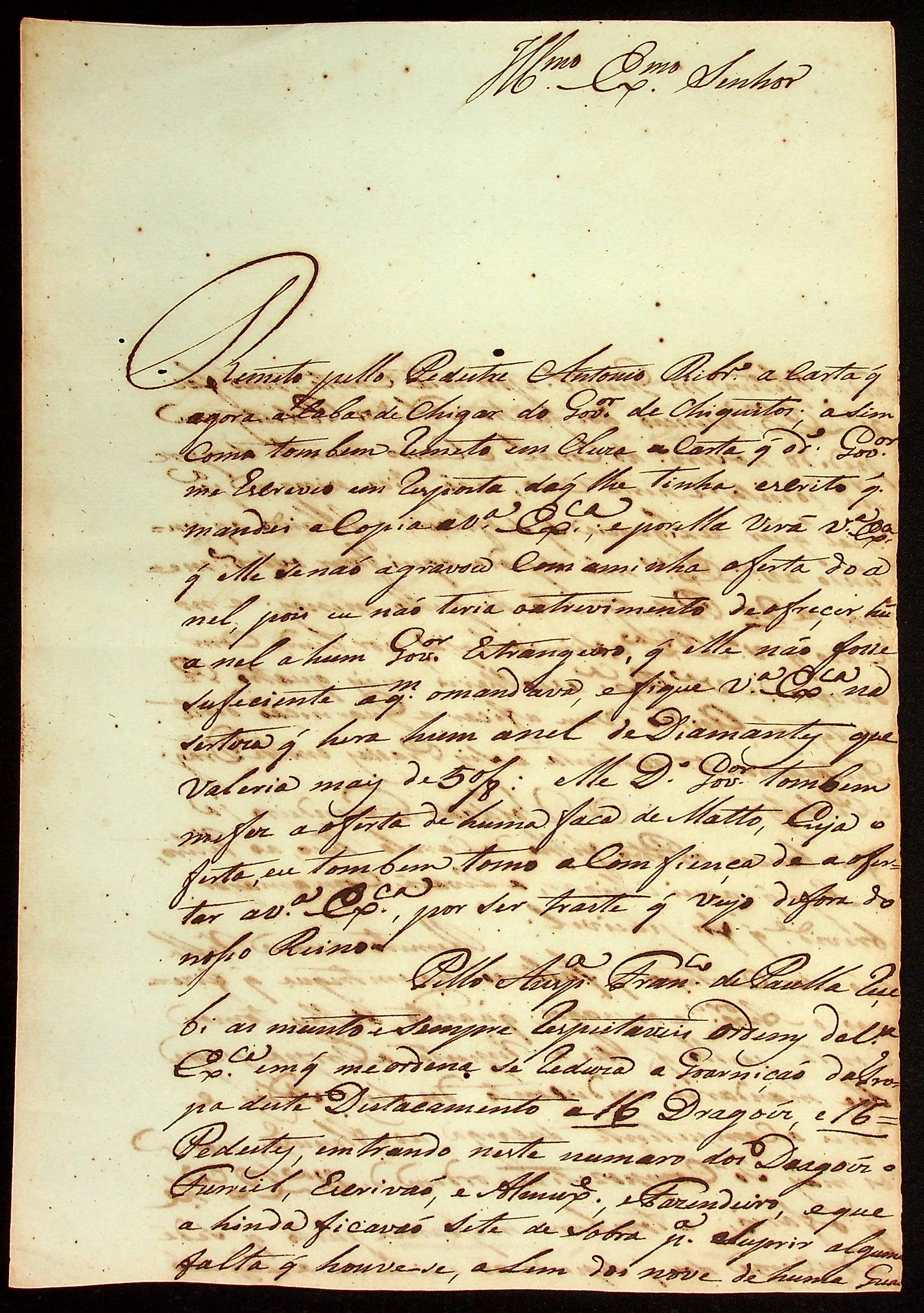 CARTA do [Alferes e Comandante] João Pereira Leite ao [Governador e Capitão-General da Capitania de Mato Grosso] Caetano Pinto de Miranda Montenegro.