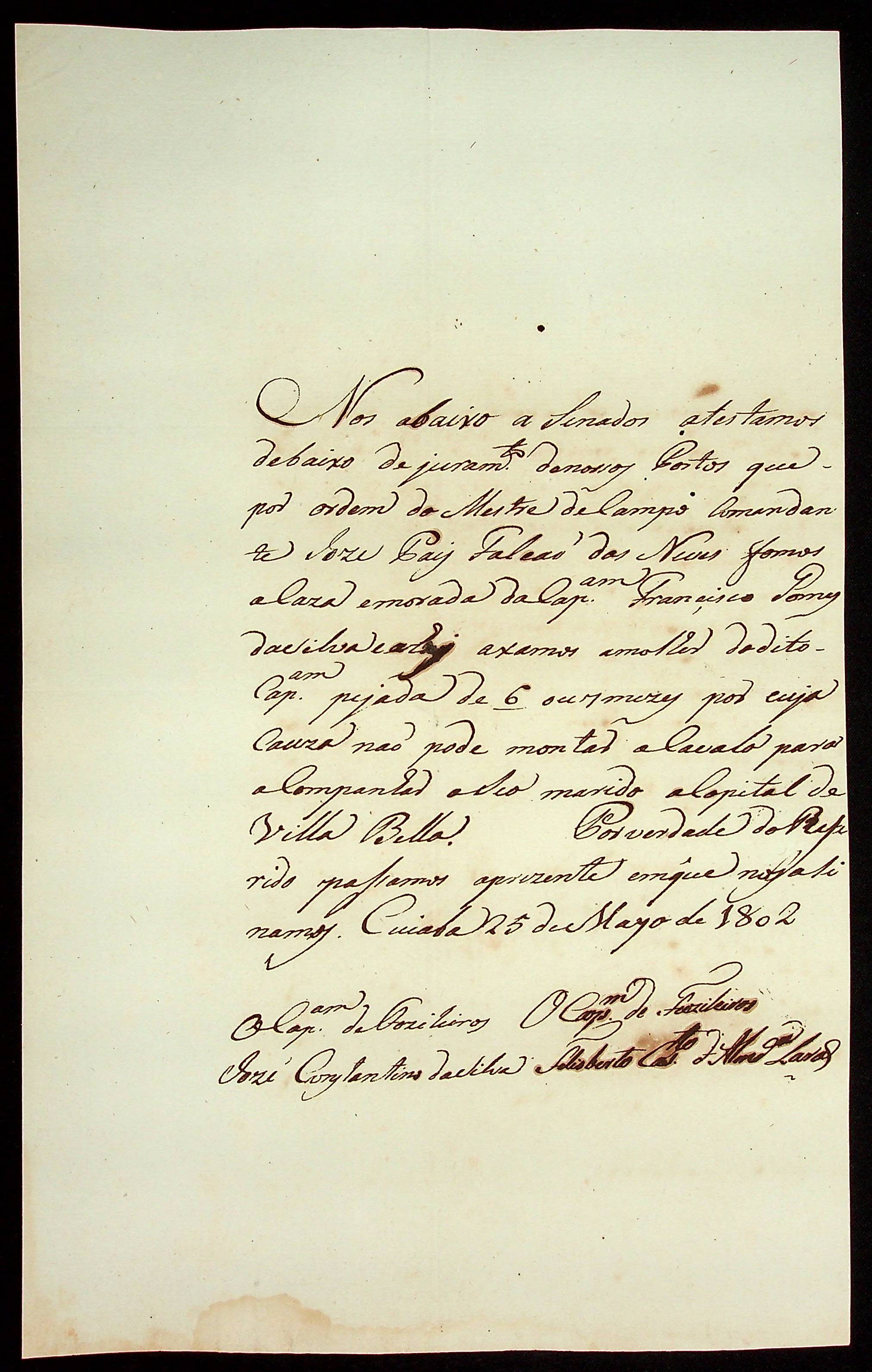 CARTA do Mestre de Campo e Comandante José Paes Falcão das Neves ao [Governador e Capitão-General da Capitania de Mato Grosso] Caetano Pinto de Miranda Montenegro.