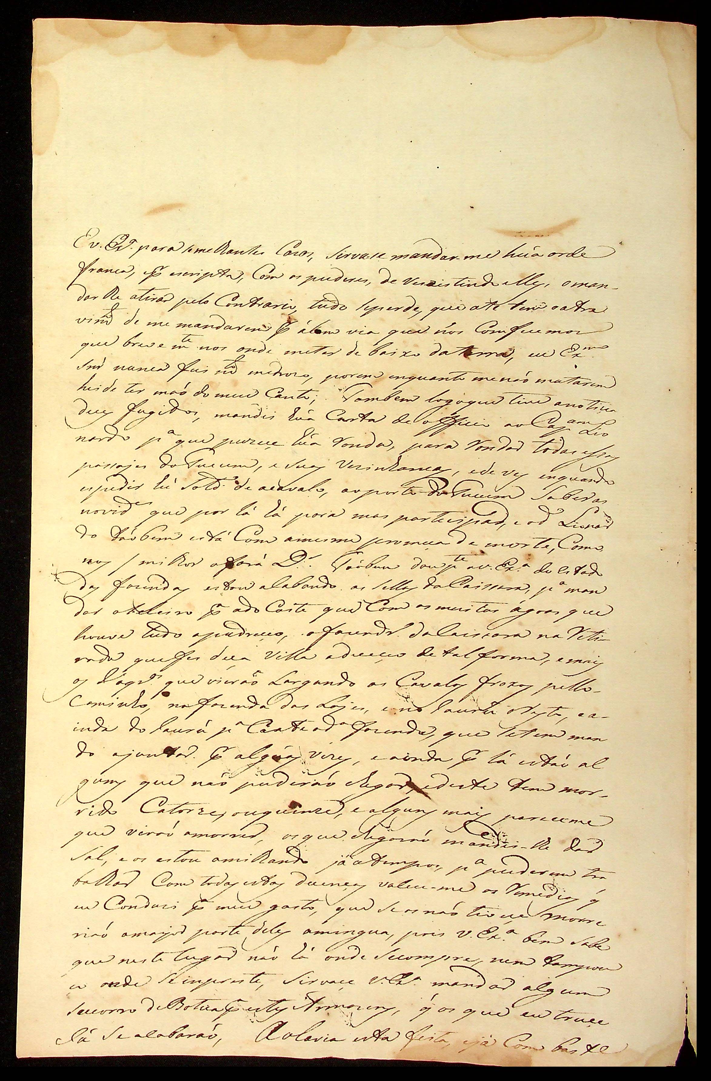 CARTA (incompleta) de Marcelino Ribeiro ao [Governador e Capitão-General da Capitania de Mato Grosso] Caetano Pinto de Miranda e Montenegro.