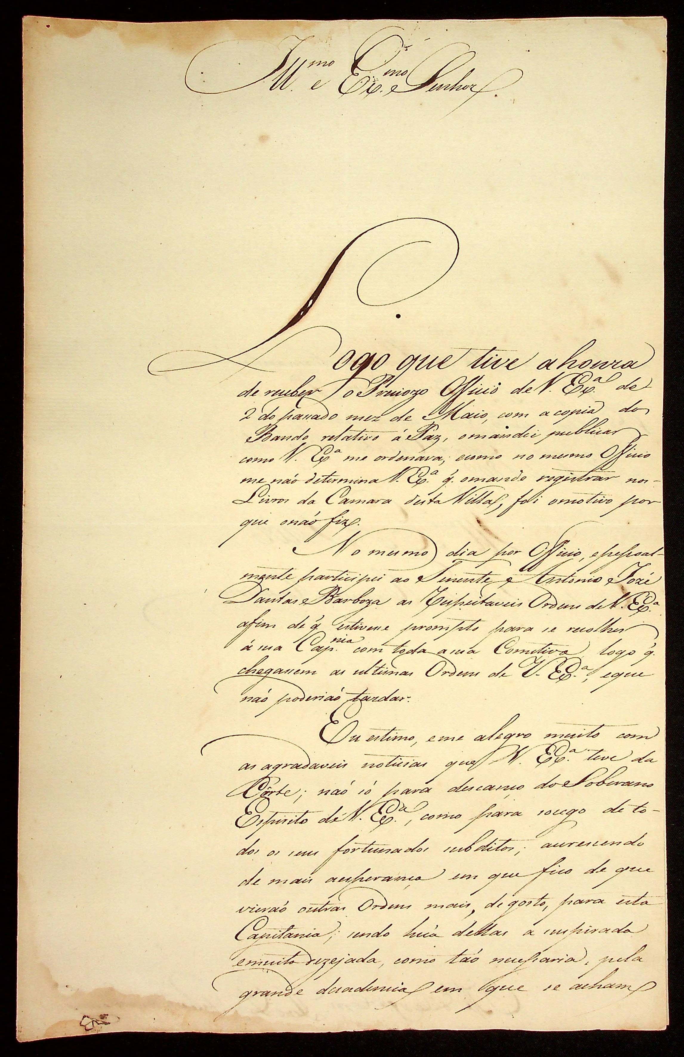 CARTA do Mestre de Campo e Comandante José Paes Falcão das Neves ao [Governador e Capitão-General da Capitania de Mato Grosso] Caetano Pinto de Miranda Montenegro.