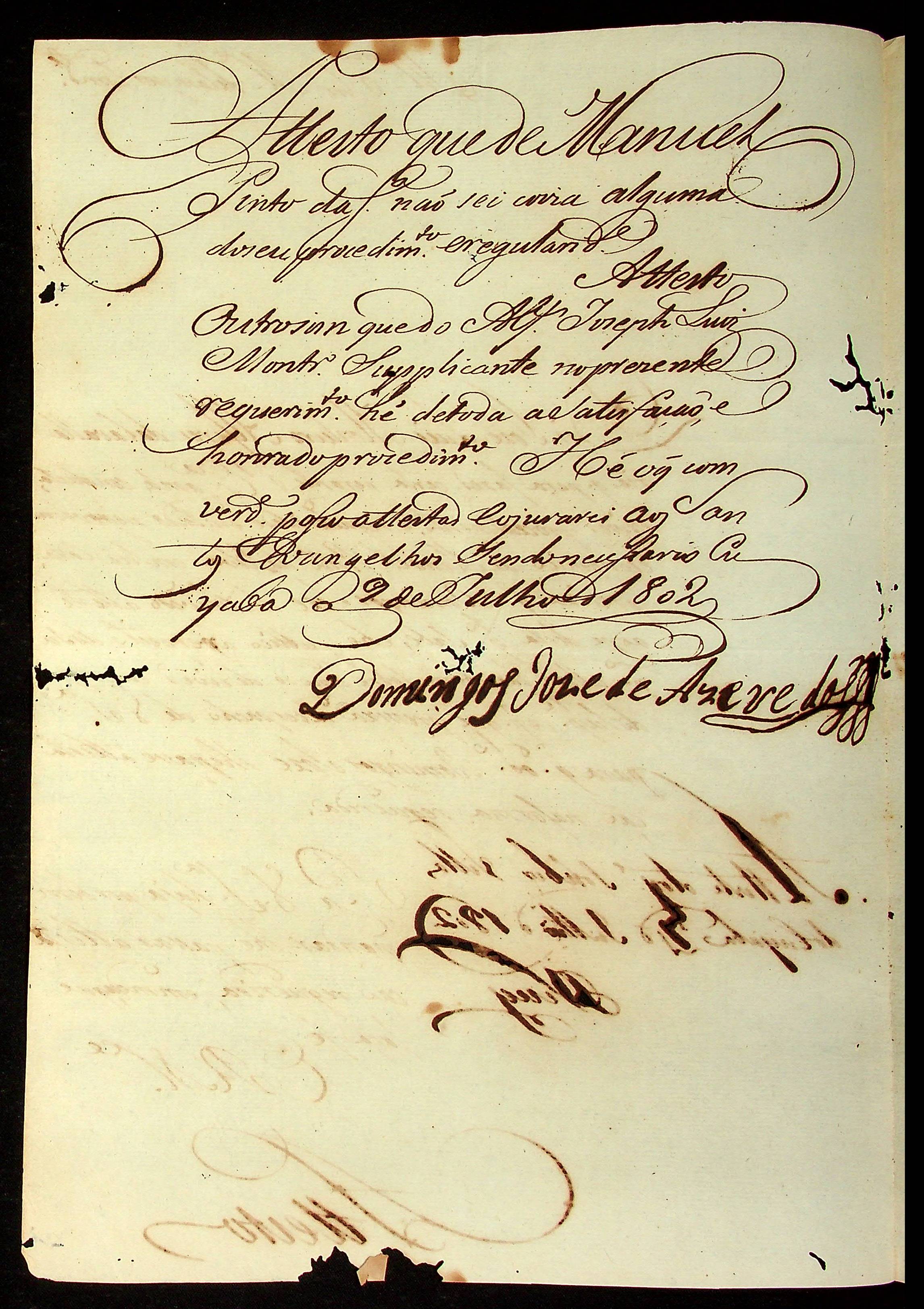 CARTA do Alferes José Monteiro ao Mestre de Campo e Comandante [José Paes Falcão das Neves].