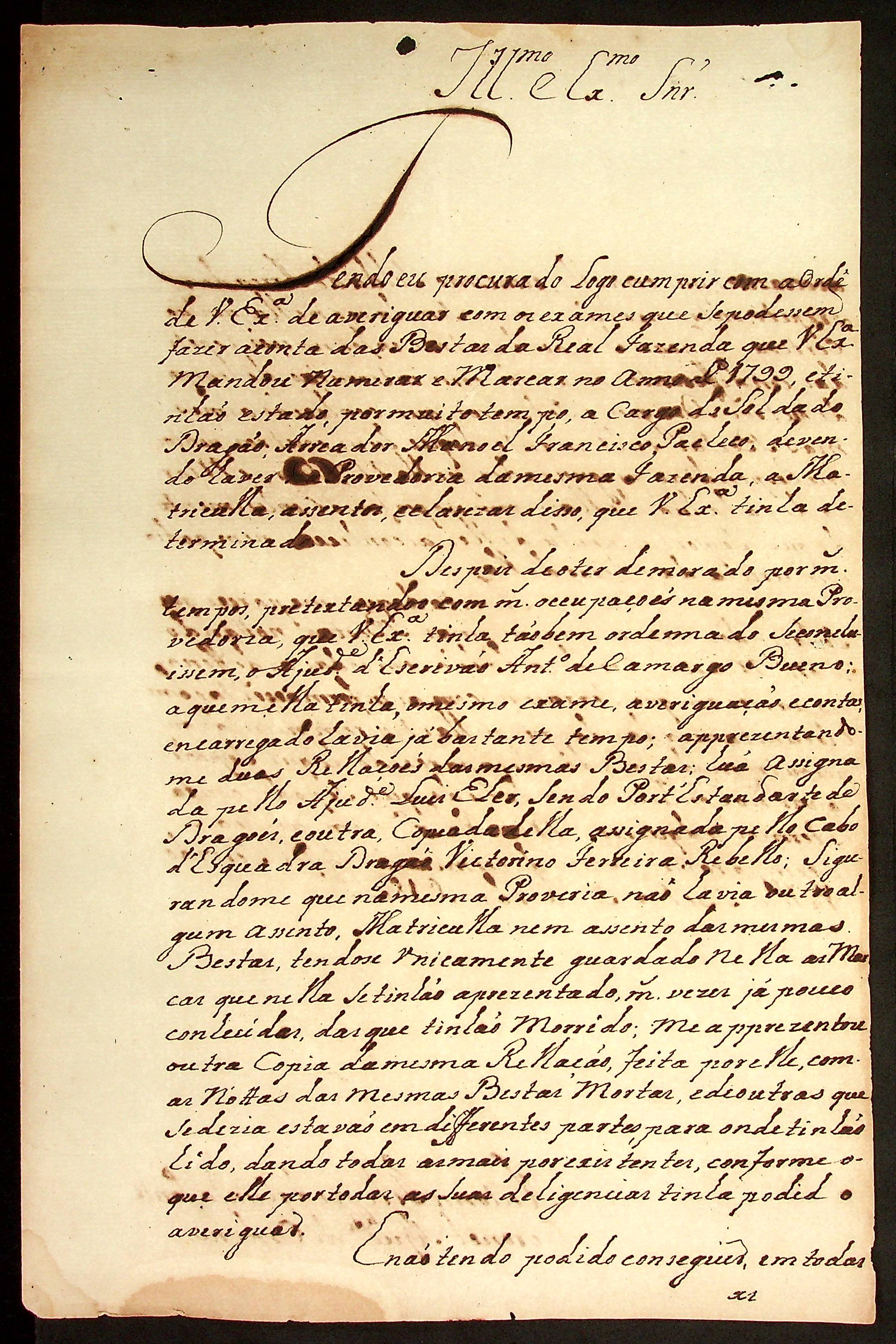 CARTA do Coronel Ajudante de Ordens Antônio Felipe da Cunha Ponte ao [Governador e Capitão-General da Capitania de Mato Grosso] Caetano Pinto de Miranda Montenegro.