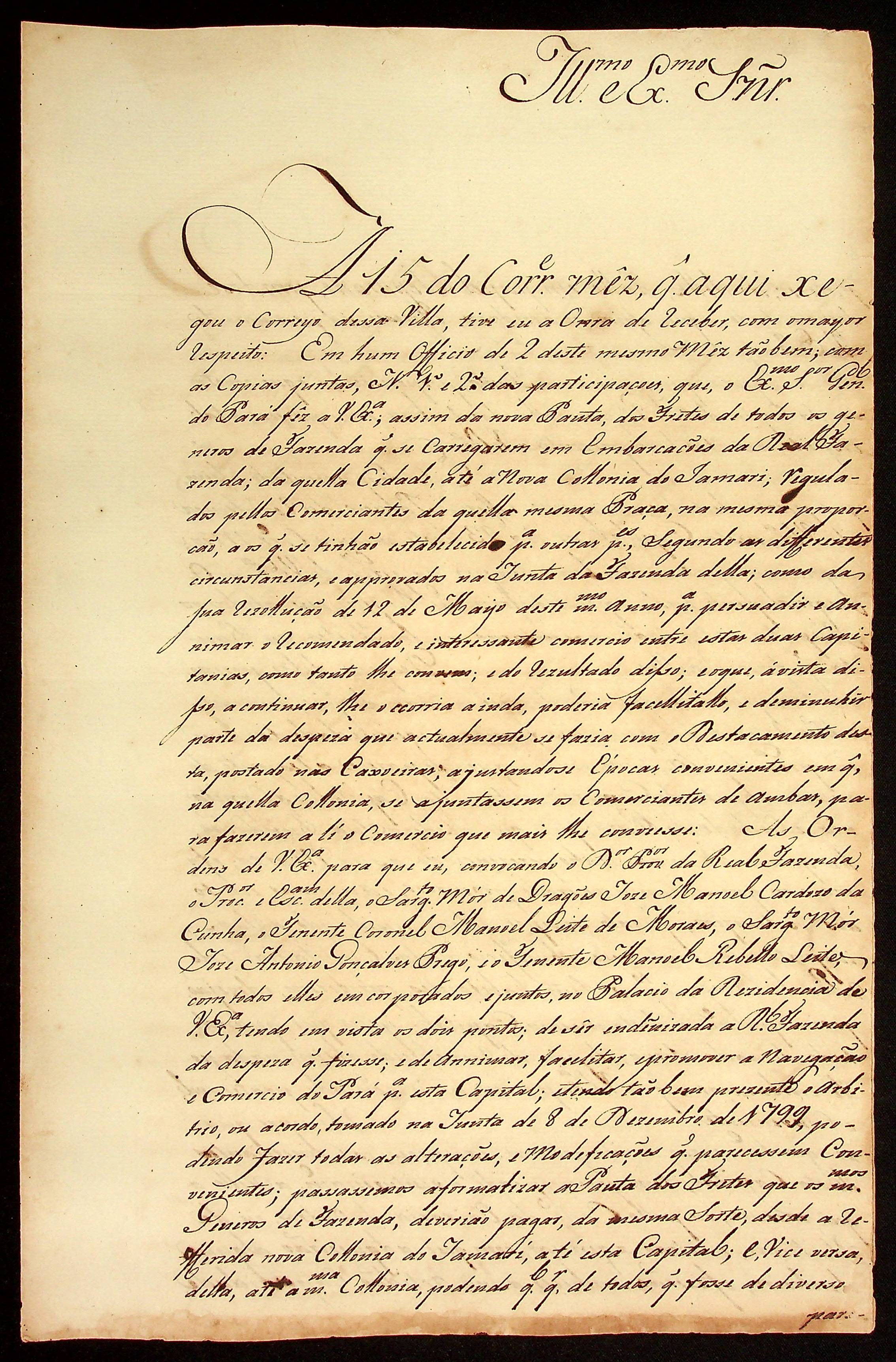CARTA do [Coronel Ajudante de Ordens] Antônio Felipe da Cunha Ponte ao [Governador e Capitão-General da Capitania de Mato Grosso] Caetano Pinto de Miranda Montenegro.