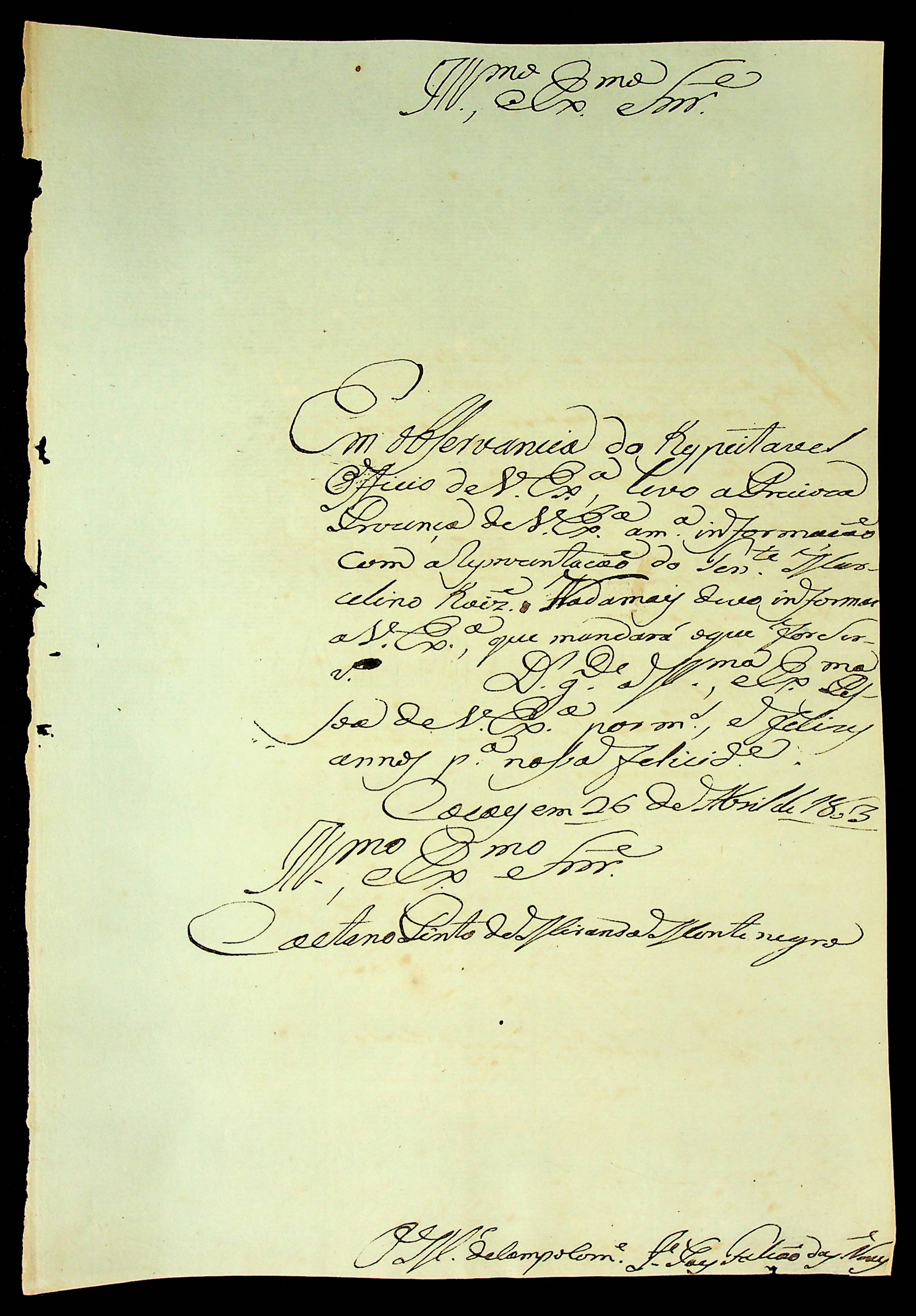 CARTA do Mestre de Campo Comandante José Paes Falcão das Neves ao [Governador e Capitão-General da Capitania de Mato Grosso] Caetano Pinto de Miranda e Montenegro.