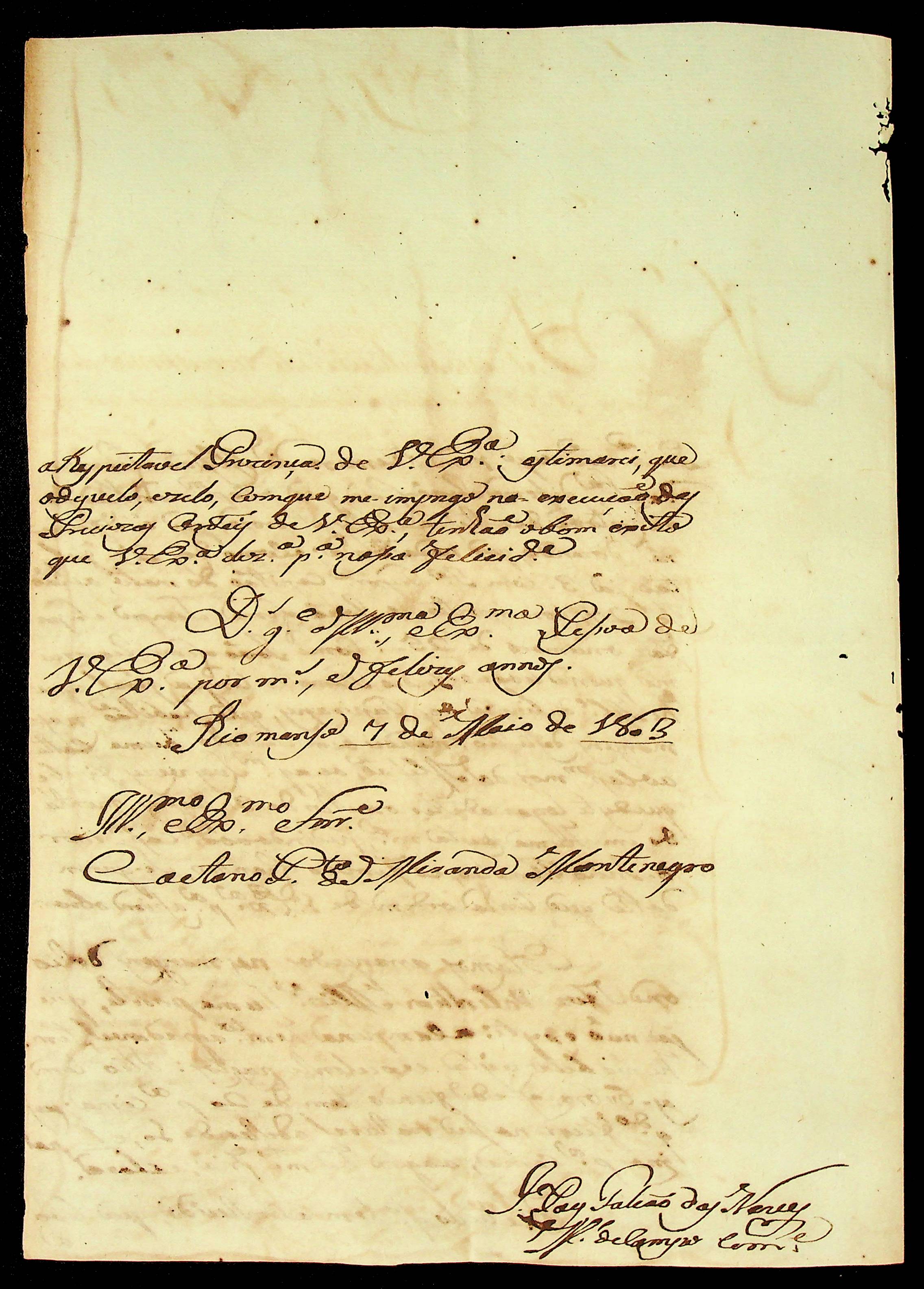 CARTA do Mestre de Campo José Paes Falcão das Neves ao [Governador e Capitão-General da Capitania de Mato Grosso] Caetano Pinto de Miranda e Montenegro.